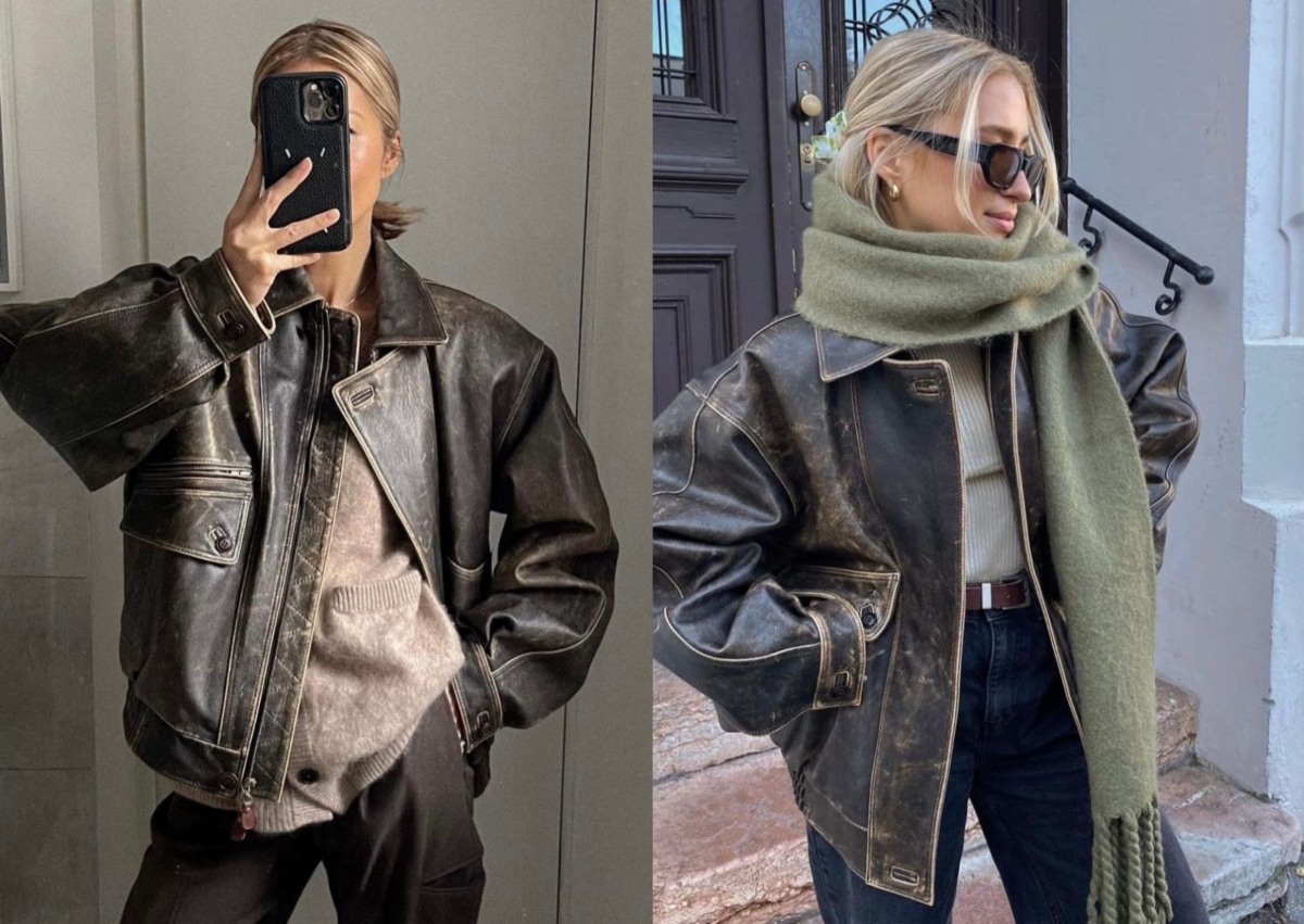 如果你就愛風格大膽、前衛又時髦的造型,那這款歐美部落客示範的這件「復古仿舊水洗皮夾克」絕對很適合你,採俐落翻領設計,材質是復古仿舊水洗,類似重機夾克的廓形,帶有些運動感,不管是搭配休閒 T或針織毛衣都很百搭。