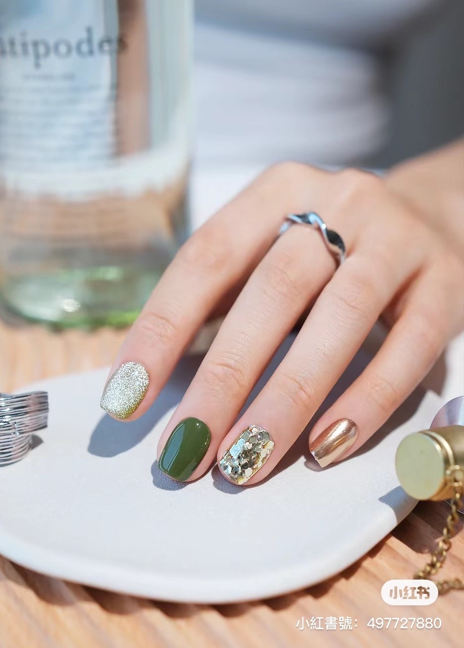 低調「聖誕綠」美甲03:亮片X聖誕綠