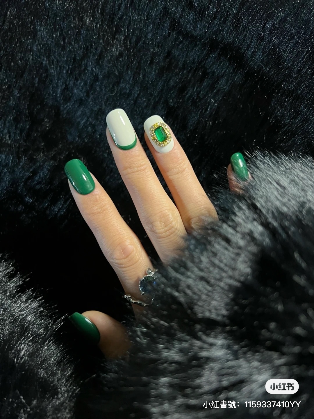 低調「聖誕綠」美甲04:綠寶石X聖誕綠