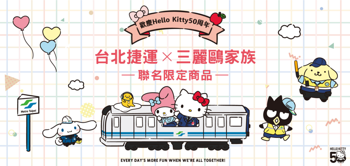 超可愛三麗鷗要攻佔台北捷運了♡這次代表合作的角色有Hello Kitty、大耳狗、布丁狗、美樂蒂、酷企鵝和蛋黃哥~11月開始各大路線將會有期間限定彩繪列車、打卡區等等。不只如此!台北捷運還與三麗鷗特別合作推出一系列夢幻商品,除了可以在線上購買,實體商店也將會在台北車站、南京復興站、中山站、忠孝復興站的商品館同步販售喔!