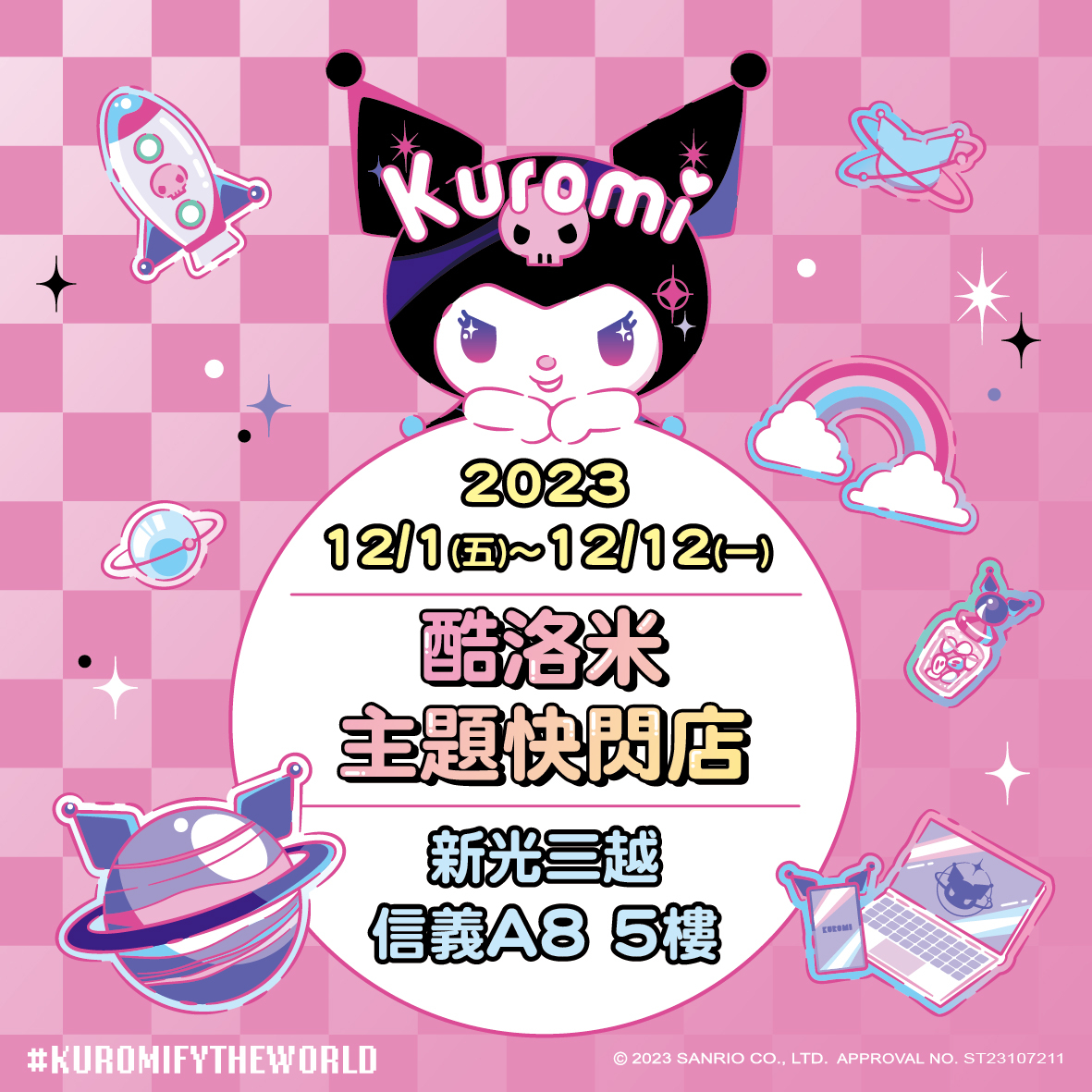 酷洛米主題快閃店舉辦在新光三越信義A8的5樓位置,時間從2023年12月1日~2023年12月12日為期12天的限定,邀請酷洛米忠實粉絲們參加場專屬限定派對!