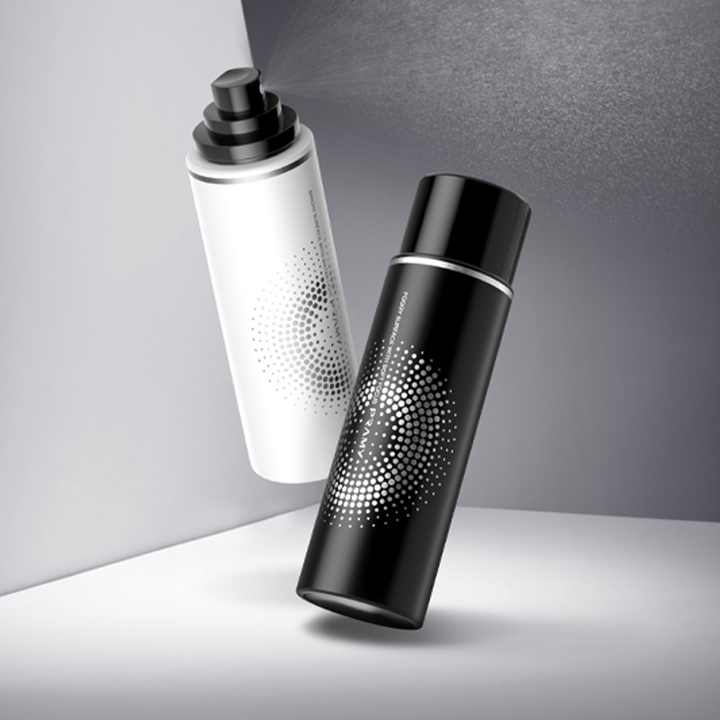 柏瑞美『長效保濕定粧噴霧』,專為適合台灣的氣候與膚質,推出保濕度較佳的白瓶,及控油度高的黑瓶,兩者皆無酒精,且使用獨家專利噴頭(100ml),勻感微壓,以近90度扇面、25微米的細緻噴霧,舒適均勻覆蓋全臉、不花粧。