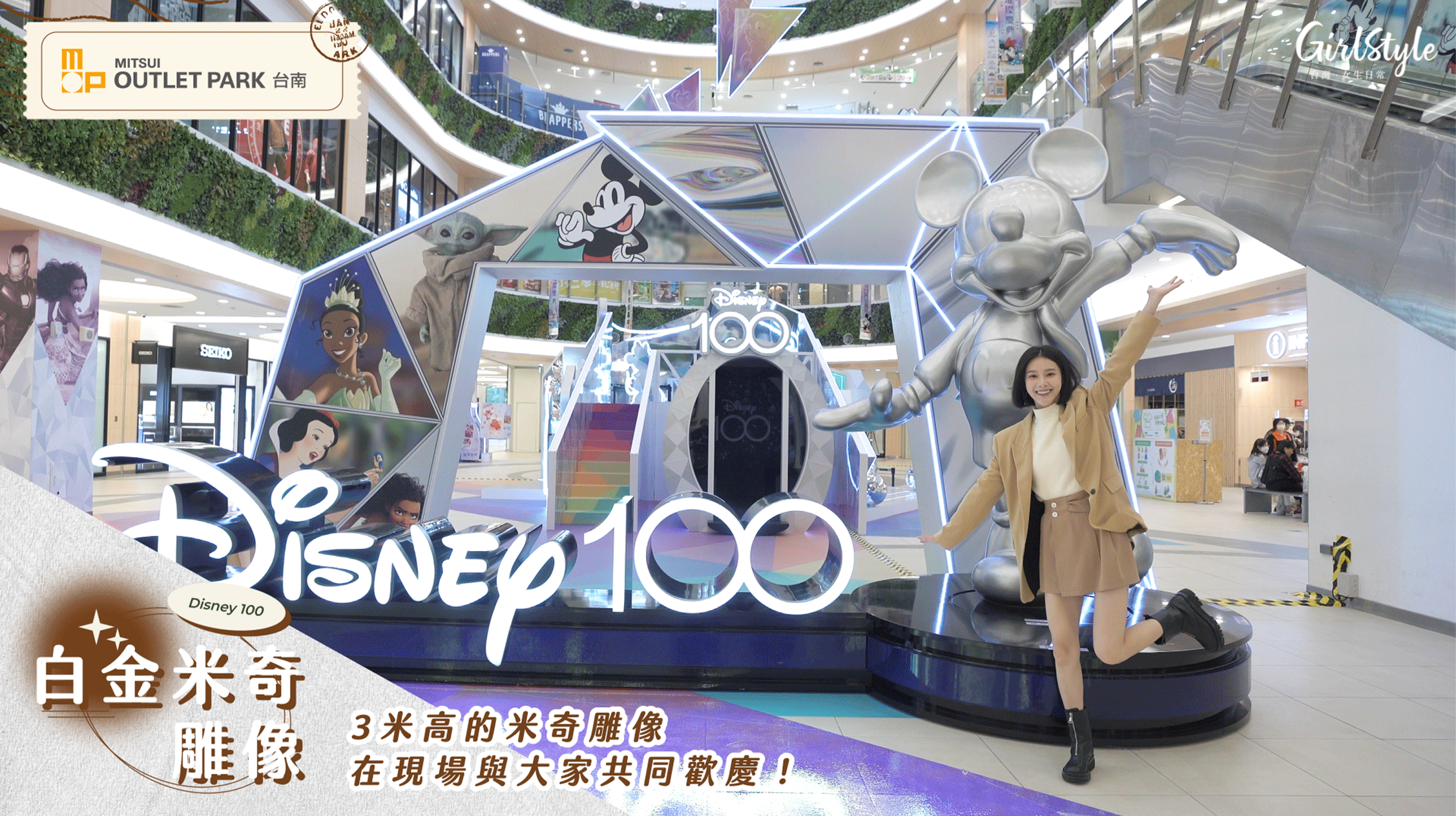 第一站先從MITSUI OUTLET PARK 台南走進時光隧道,入口就能看見3米高的白金米奇雕像就在迎賓處舉著手歡迎各位的到來,超可愛的模樣瞬間融化各位的心 ฅ♥ω♥ฅ!