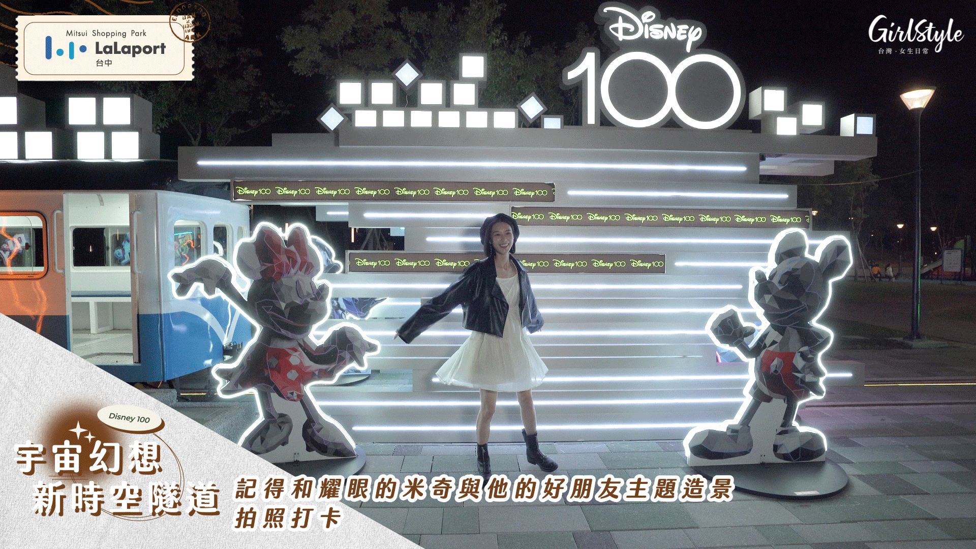 最後一站正是把過去、現在和未來串起來的Mitsui Shopping Park LaLaport 台中 奇幻一百,絢爛未來!從昔日巡道車直接抵達未來!跟著迪士尼經典角色們進入宇宙幻想主題陳列。新時空隧道開啟全新旅程!晚上這裡真的超美~絢爛燈光加上踏入隧道的那一刻,彷彿自己就像動畫裡的主角,科幻感爆棚不拍一個REELS說不過去ヽ(●´∀`●)ノ!