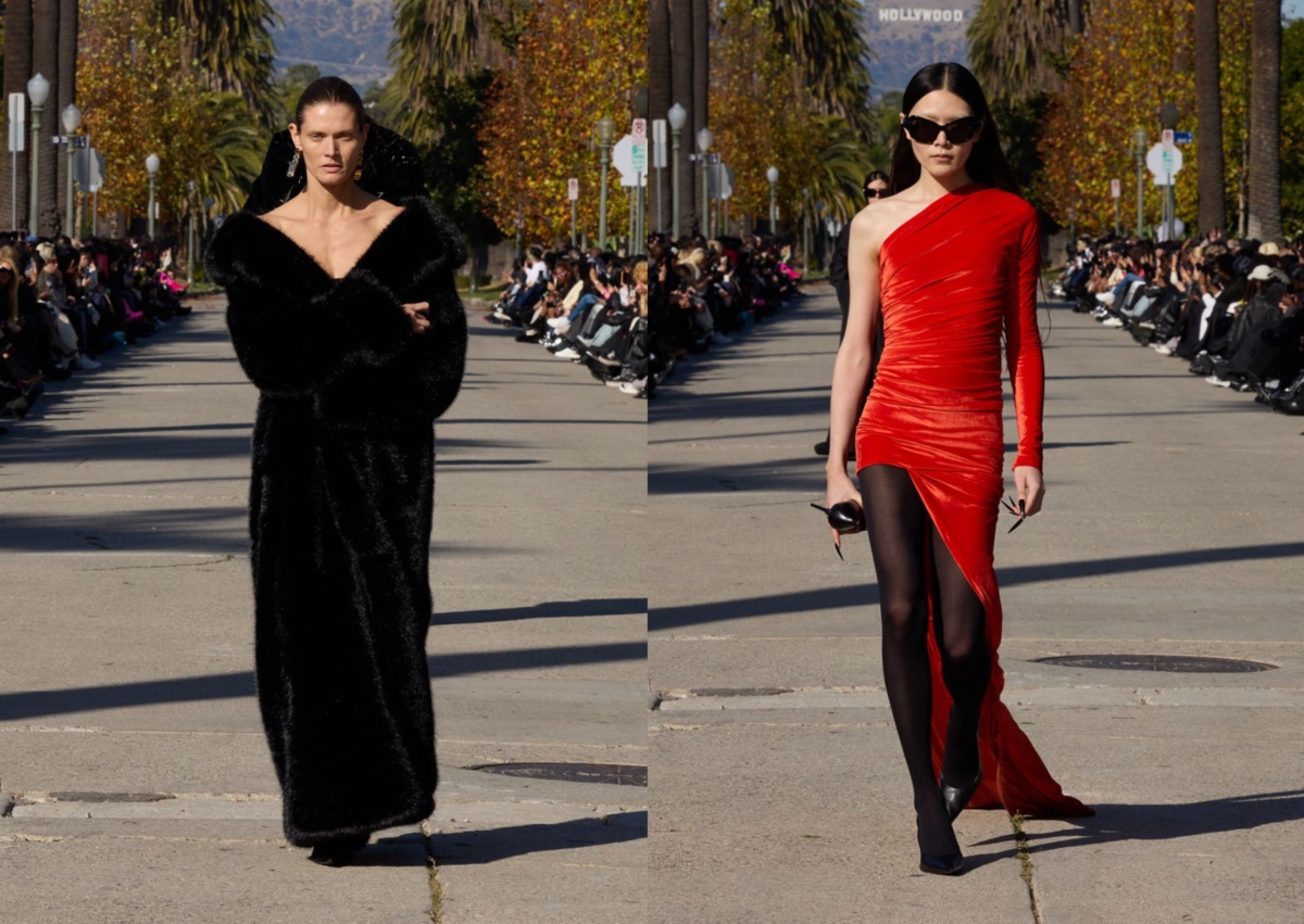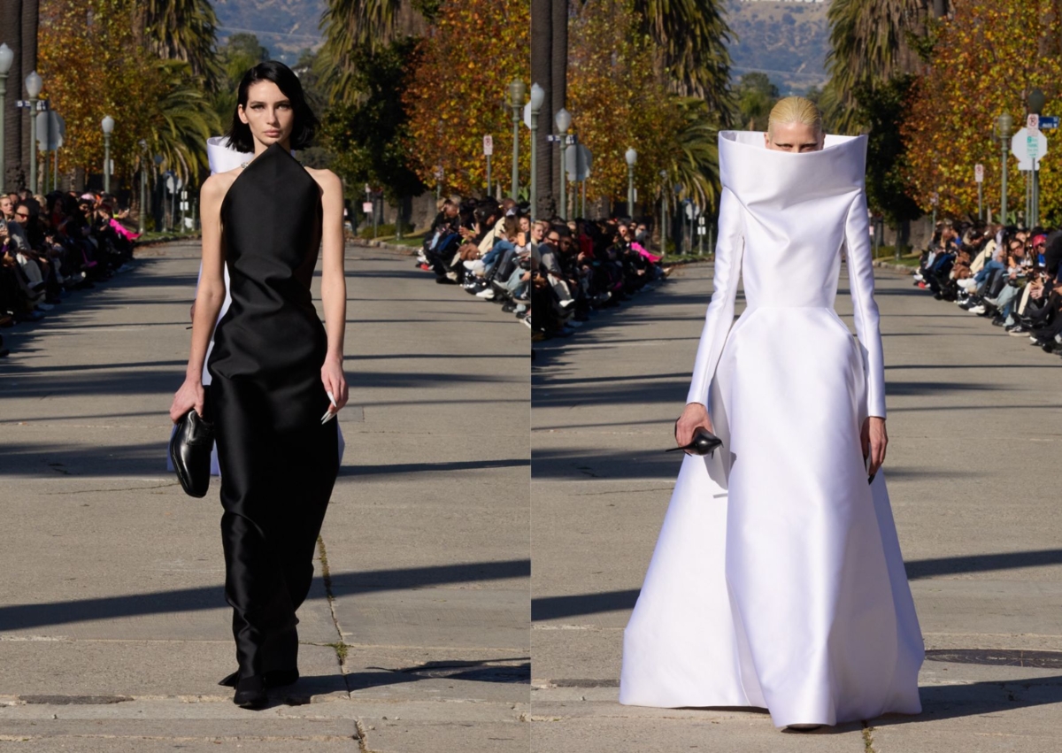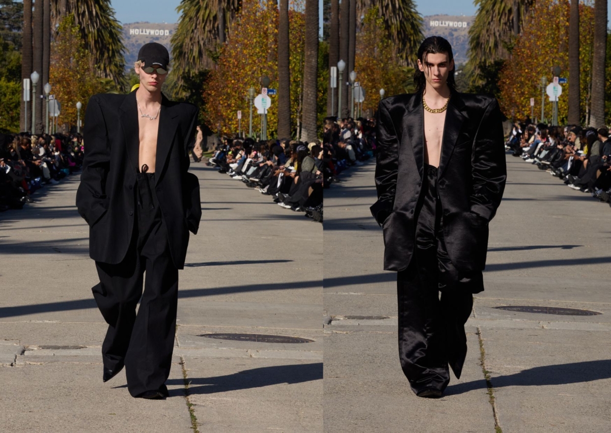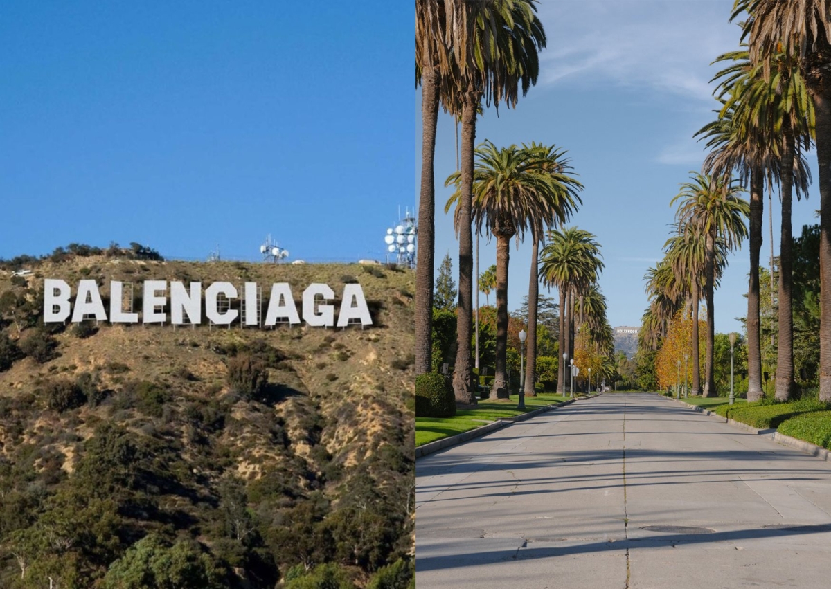 這次 Balenciaga 2024 秋季大秀並沒選擇腳踩在泥濘地上,也不用在暴風雪下寸步難行,更沒有華麗的高級紅毯佈置,創意總監 Demna Gvasalia 將秀場搬到洛杉磯的 Hancock Park 社區舉辦,Hancock Park 社區是洛杉磯著名的豪宅區之一,也是世界上 Demna 最喜歡的城市之一,秀場更取了著名的「HOLLYWOOD」好萊塢地標,棕櫚樹林立的街道為背景,整條馬路就是 Demna 的伸展台!