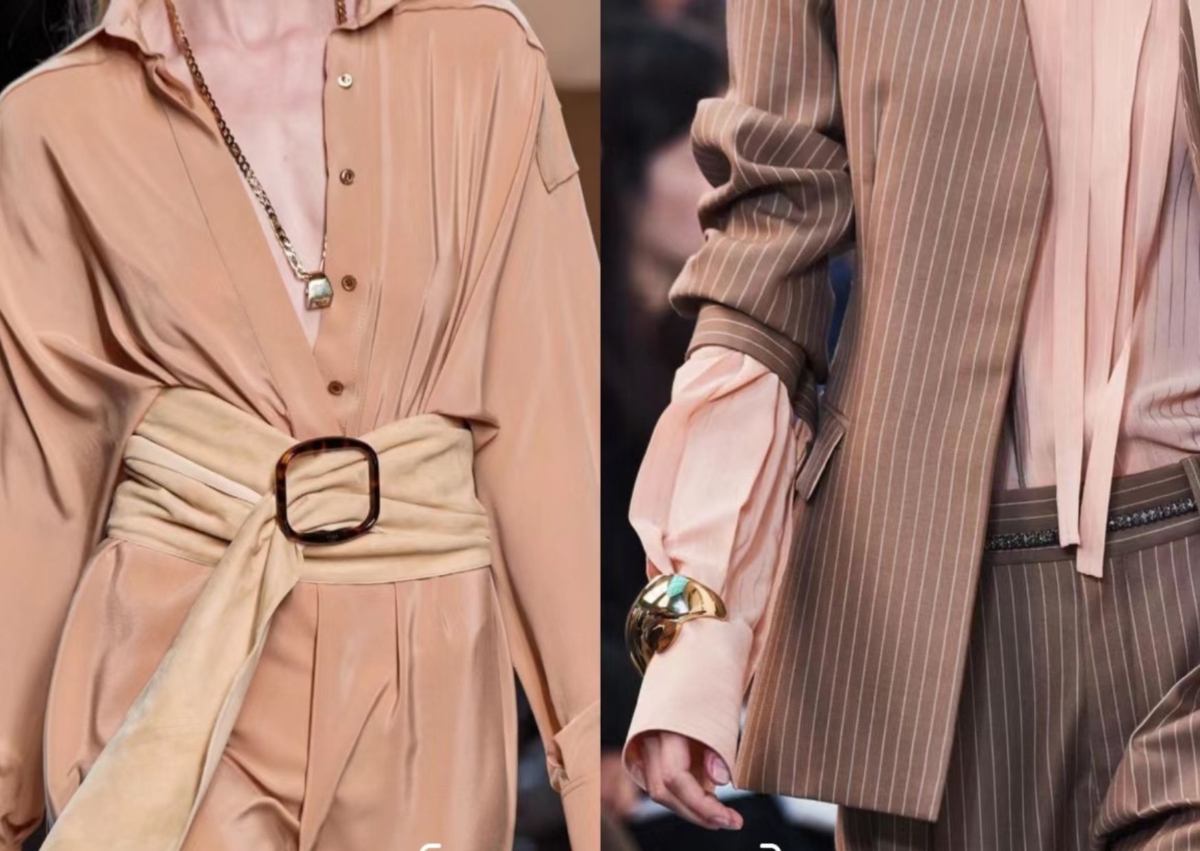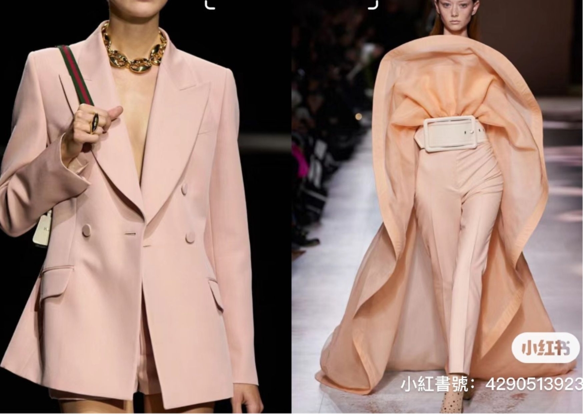 在過去時裝周上也可以看到幾套「柔和桃 Peach Fuzz 」的秀場造型,可見時尚界也早已預測這個趨勢了嗎?若是不敢輕易嘗試,編輯建議可以先從配件下手,例如包包、手袋、腰帶和外套等單品,或是從材質上做出變化,燈芯絨、西裝布或蕾絲等,找到最適合自己的療癒桃色,就走在時尚最尖端!