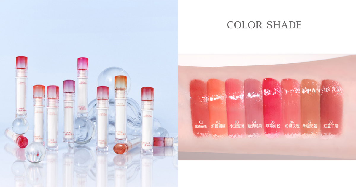 水晶唇釉在韓妞界不但被譽為約會法寶,還有充足的色選可以應付各種場合,其中還添加玫瑰萃取成分,上唇潤澤保濕、輕盈又不黏膩,近距離也不顯唇紋!#03水漾蜜桃輕透又低調的甜美粉色,上唇後透出水晶般的質地,讓整體妝容更加精緻又不浮誇,瞬間化作韓國歐逆嘟嘟唇!