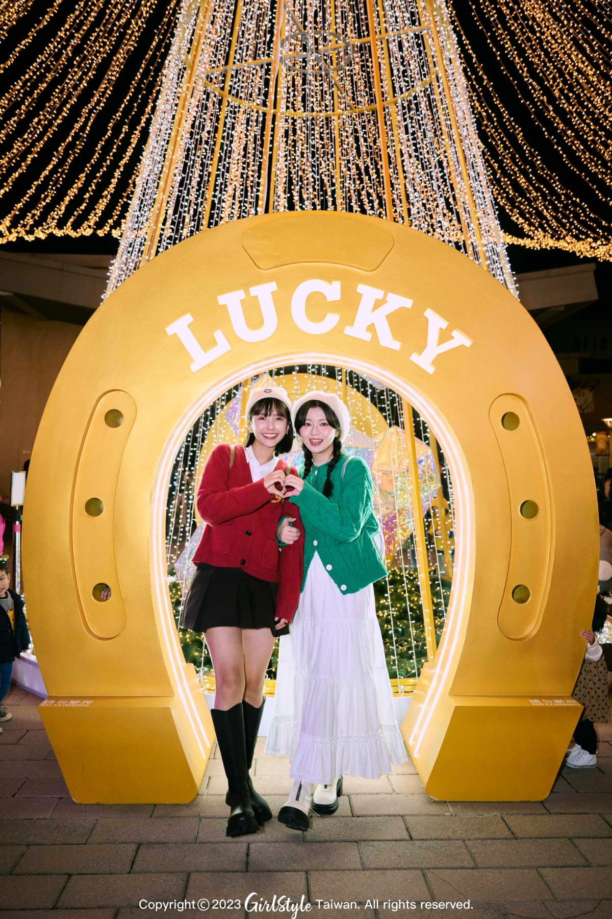 新的一年要想幸運一整年~那就勾起閨蜜的手與聖誕樹前後的大型馬蹄鐵擺飾合影,祝福彼此明年的每一天也會一樣幸運,友誼持續升溫~搭配聖誕樹絢麗的燈光,瞬間有了如夢似幻的節慶氛圍感!