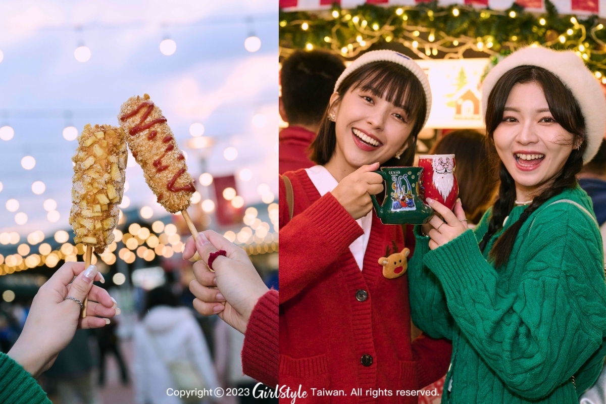逛餓了也沒關係,「露天飄雪聖誕市集」網羅41攤人氣品牌,讓你從一至三期邊吃邊逛不停歇!除了有女生必收的可愛飾品,還有手工餅乾、手作司康、糖葫蘆等,空氣中還傳來超香的「韓國半半熱狗」味,讓小編立馬飛奔到攤位前想一嚐那拔絲的起司跟炸到酥脆的麵衣,每一口都有一秒飛到韓國的感覺XD,搭配超有聖誕氛圍的「正宗德國熱紅酒」,點一杯酸甜適中、入口溫潤的招牌熱紅酒與閨蜜一起享受一場暖心又暖胃的微醺之旅,從白天一路逛到晚上都驚喜滿滿~
