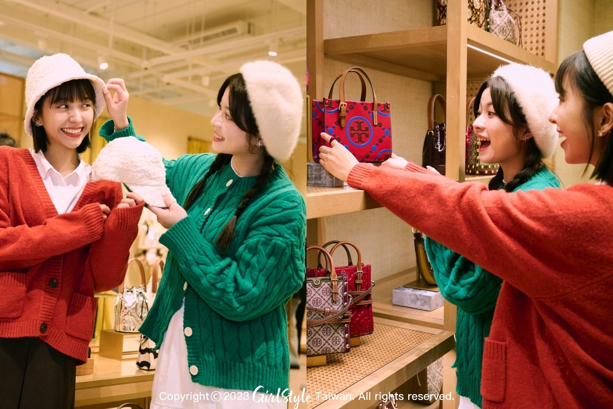 挑完衣服當然還要來點精品配件啦~畢竟我們可是在華泰名品城捏!Tory Burch 真是太好買了,除了應景的紅色系、高顏值的老花包根本超百搭,米白色帽子更是讓女孩不小心叫出聲來,收到這樣的聖誕禮物真的幸せです(好幸福)~~