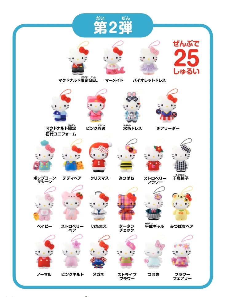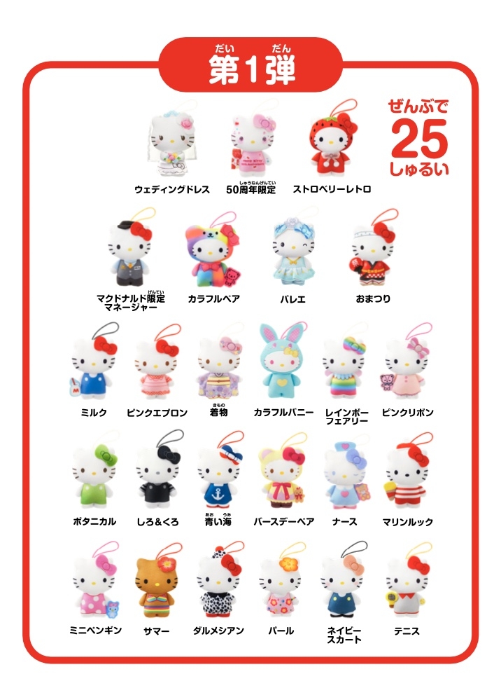 三麗鷗聯名日本麥當勞「慶祝Hello Kitty50週年生日」,推出兒童餐50款Hello Kitty玩偶吊飾,超多經典造型根本珍藏品♡