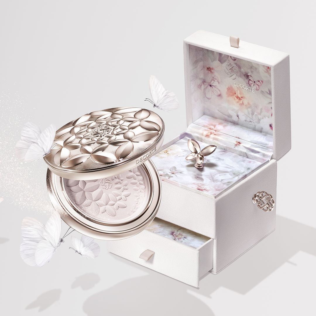 內行人都好評的黛珂永恆祈願蜜粉,今年以花漾舞蝶為主題登場,依然使用「獨特粉體凝固工法」使鬆散的粉體凝結成固態,在不使用任何黏著成分的堅持下,比一般的蜜粉多花費了兩倍的工程,更為產品質地注入了獨特的觸感和品質。細緻且高親膚的粉體難怪受到美妝控們的喜愛!