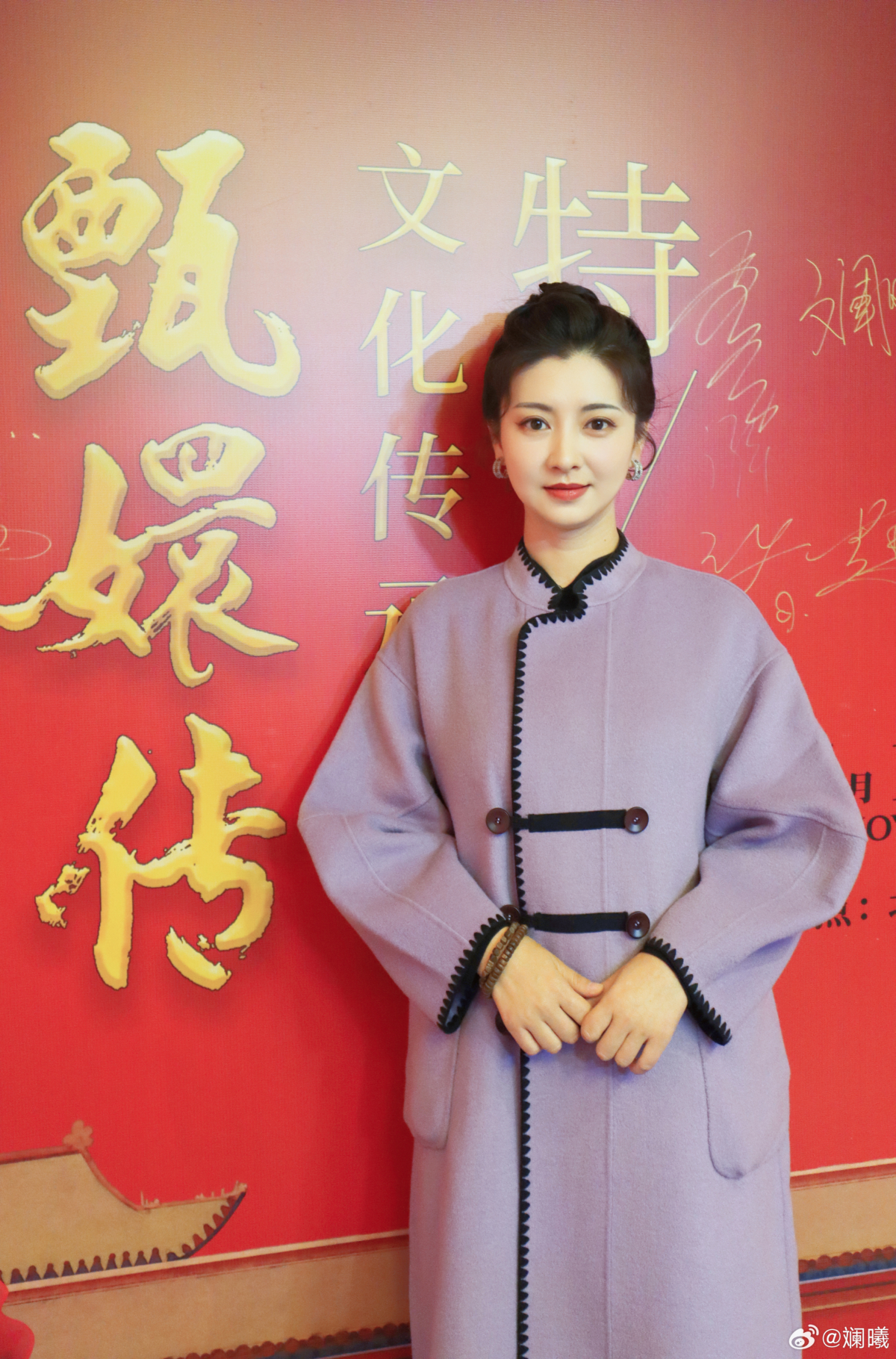 今年秋季斕曦與《甄嬛傳》眾演員們一起出席文化傳承體驗特展,她穿著一身粉色嬌嫩的薰衣草色粉紫色大衣,類中國風的鈕扣造型及袖口設計搭配馬丁靴相當突兀,站在「果郡王」李東學身旁,奇妙的穿搭再次成為熱議話題。