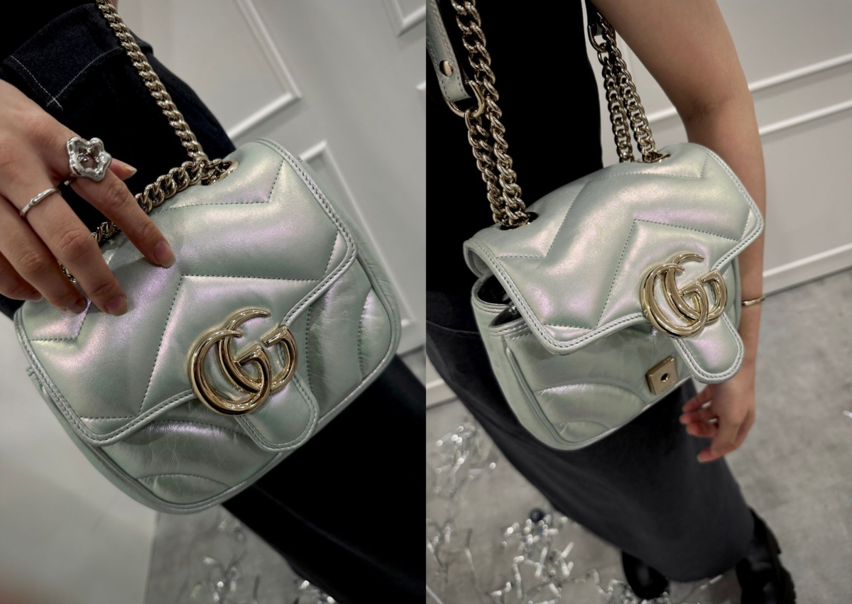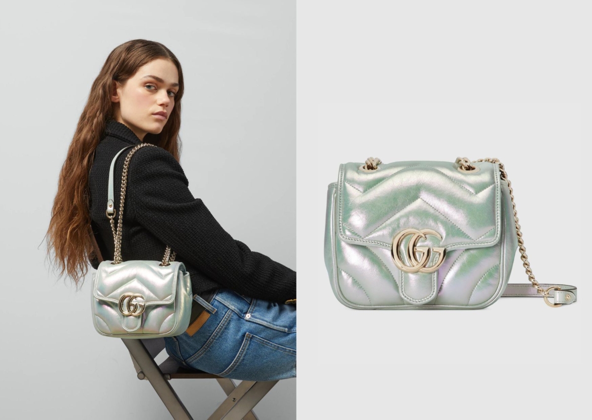 銀色精品包04:Gucci Marmont 銀色炫彩蓬蓬肩背包,NT$ 95,700