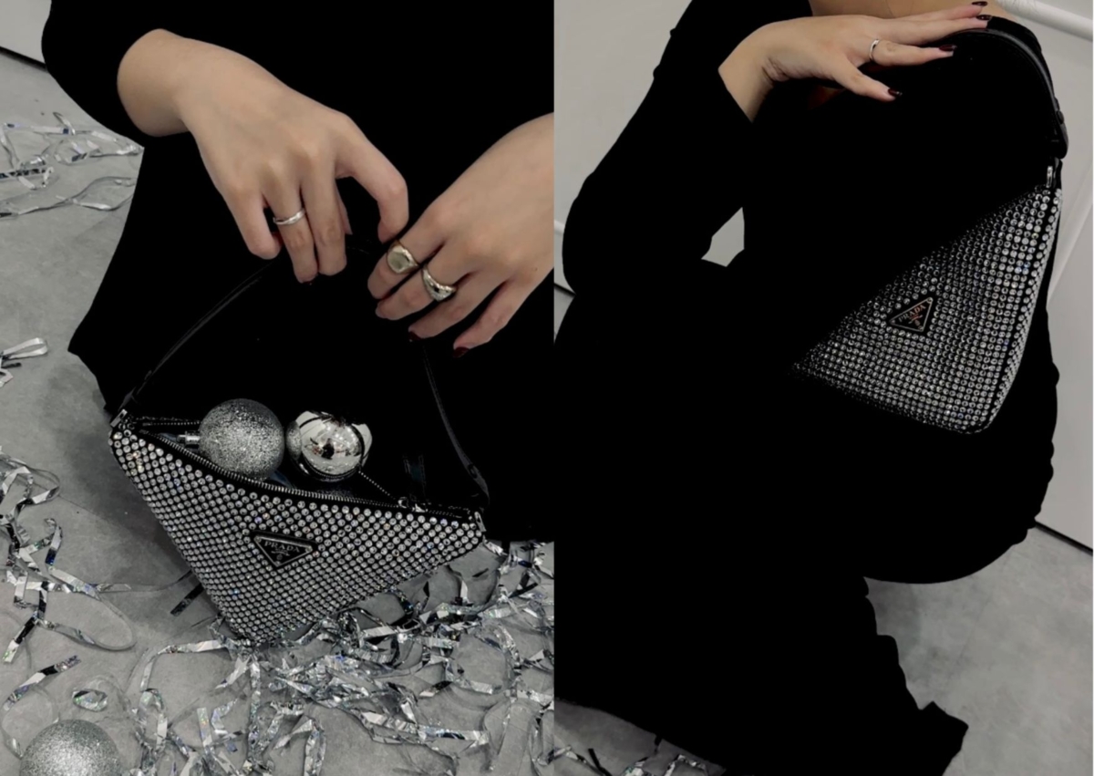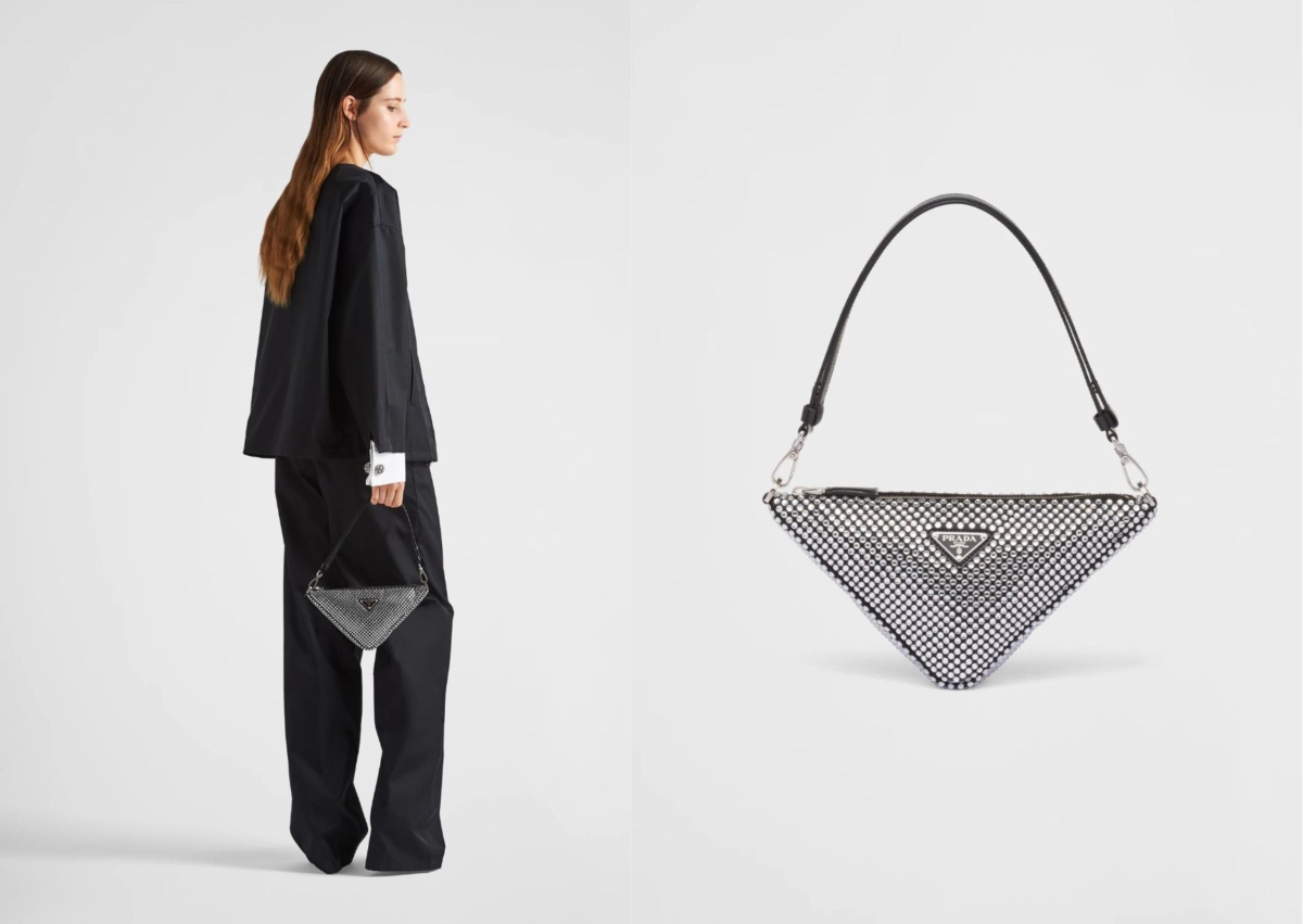 銀色精品包06:Prada Triangle 綢緞迷你水晶手袋,NT$110,000