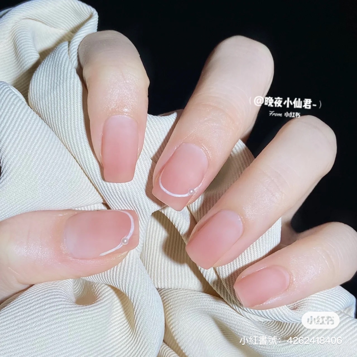 一款氣質百搭的線條款美甲推薦女孩們一定要試試~在漸層的桃色指甲上添加白色細線條,既簡約又不失奢華感。霧面質感讓白色細線條元素更加融入指尖,也可以適當的加上珍珠作為點綴,溫婉的優雅感一秒就展現出來啦!這款溫柔細線美甲也很推薦婚禮場合,新娘或是伴娘搭配裙裝優雅登場~
