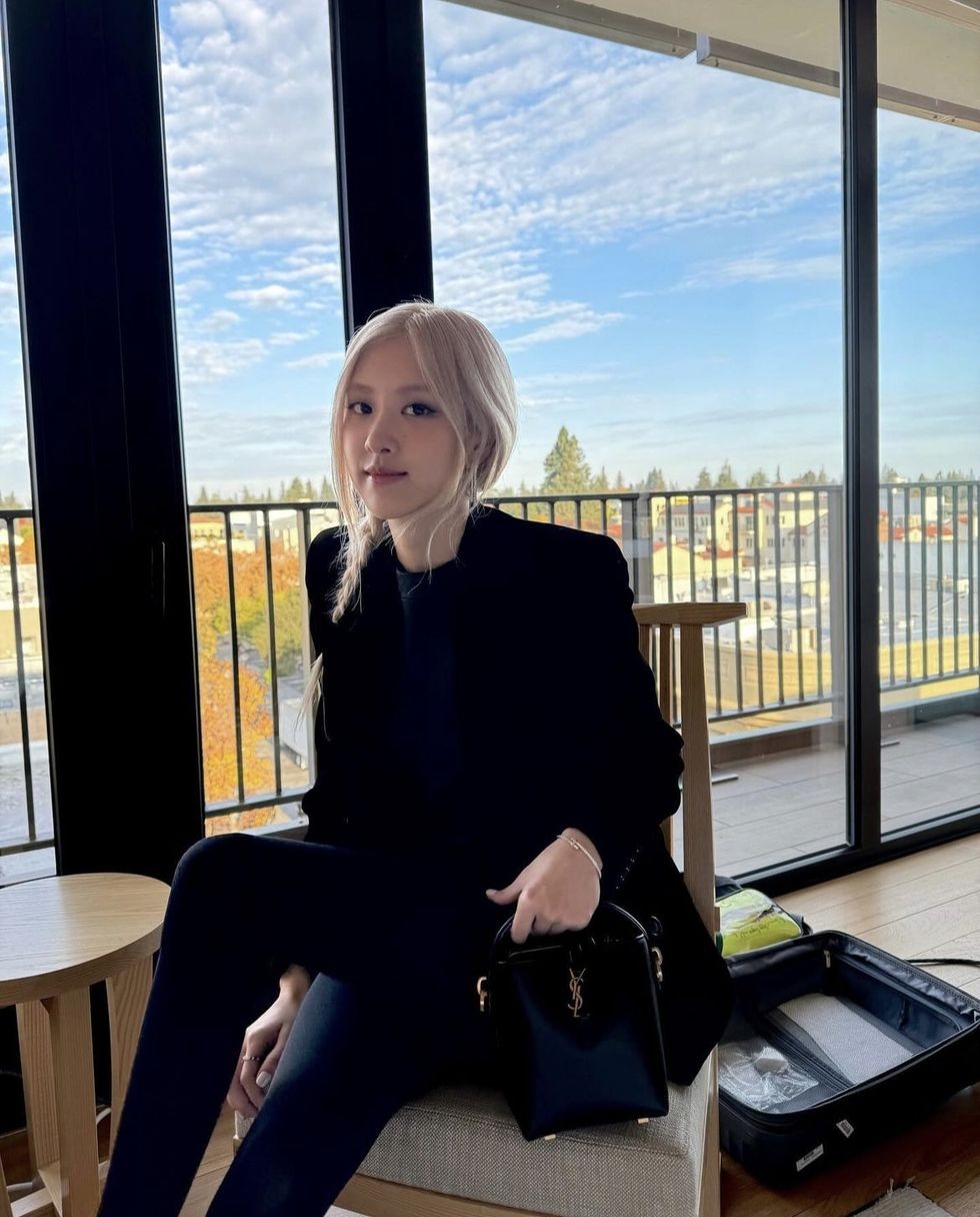 Blackpink Rosé 日前出席加州蘋果總部為參加APEC高峰會各國領袖配偶所舉辦的心理健康座談會上,正以天鵝絨西裝外套搭配 Saint Laurent LE 37 迷你皮革水桶包,搭配一頭金髮低馬尾辮,展現霸氣又知性的氣息,帶有一些休閒感的水桶包款式,恰好讓 Rosé 這身正裝打扮多了些親切感。