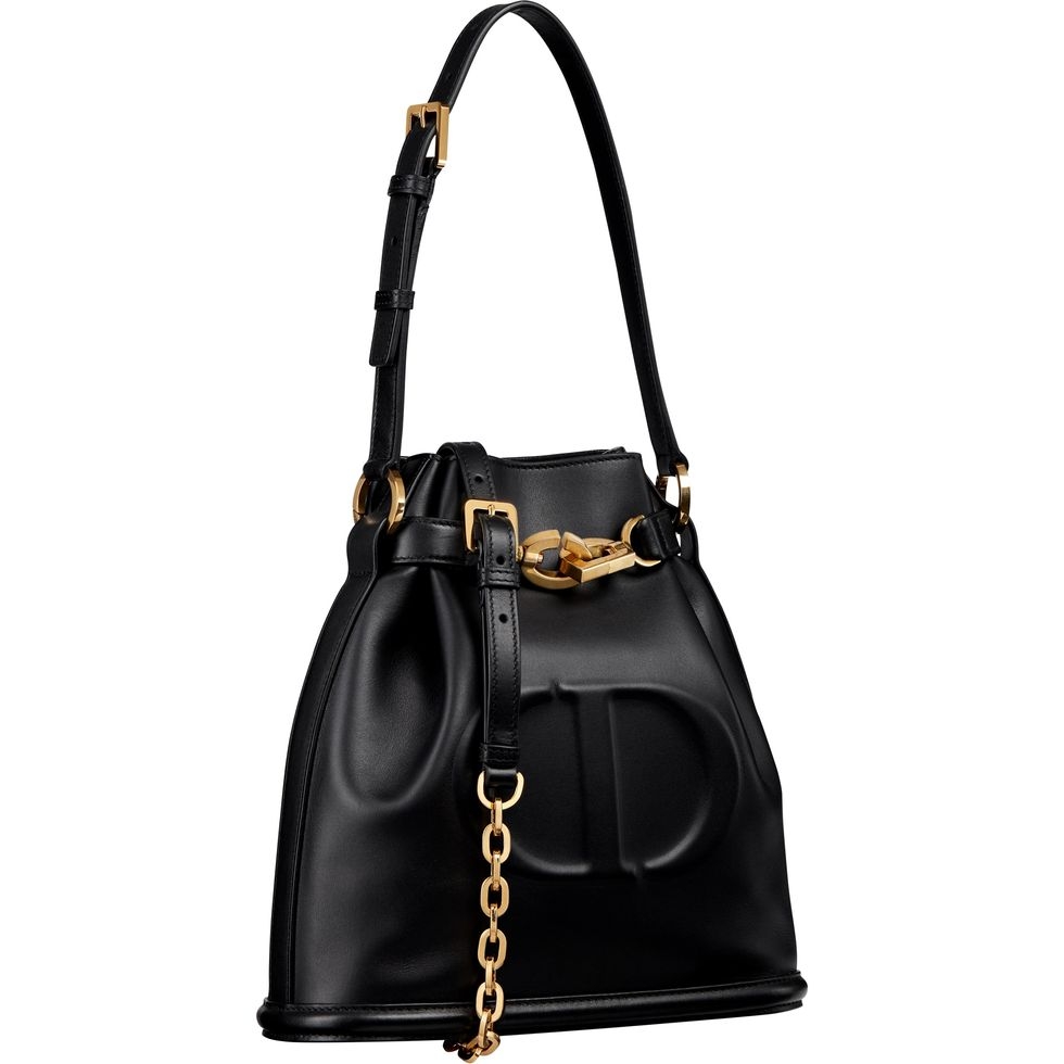 Jisoo 揹的同款 C’est Dior水桶包是今年秋季的新包,以浮雕工藝重新演繹品牌名縮寫的代表性 logo,圓弧精緻外型搭配金色鍊條配件,肩背或手拿都合適,除了百搭的黑色皮革款,還推出摩卡棕、拿鐵白款,也有 Dior Oblique緹花帆布、籐格紋拉菲草款和酒椰葉結合航海風條紋丹寧布設計款,尺寸則有小、中、大多種選擇,可見這顆包有多熱賣啦!