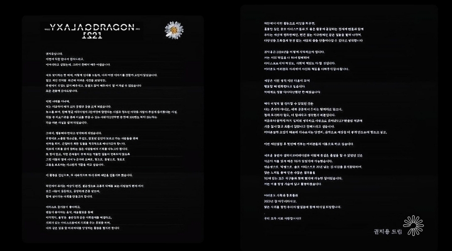 在記者會最後,Galaxy Corporation公開GD想告訴社會的一封信,以下為全文: