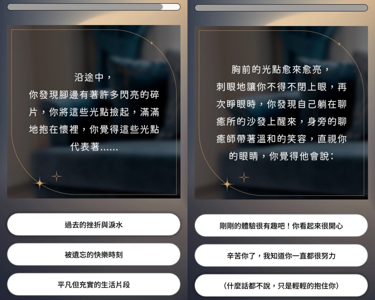 就算過程的回答如何,到了第10題從回憶醒來時,都會從療癒師身上獲得安慰與正能量的回應,測完後不禁讓人感覺心暖暖♡