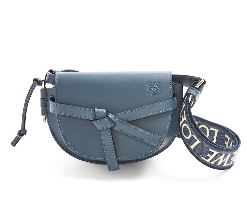 「霧霾藍」精品包06:LOEWE Mini Gate Dual 柔軟小牛皮和提花迷你門雙包,NT$ 58,900
