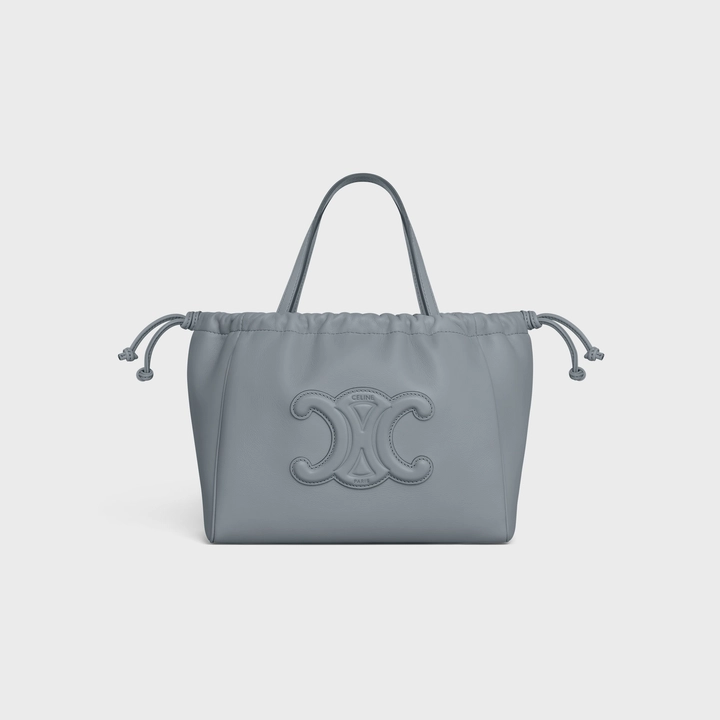 Celine Cuir Triomphe 平滑牛皮革小型 Cabas 索繩手袋在2022年度推出,憑藉可愛又圓潤的包型受到大家喜愛,採用小牛皮及小牛麂皮襯裡,重點是特殊裝飾性索繩設計注入一些休閒感,整體都是用霧藍色調,看起來更加一致性了,包裡有一個主內格、一個扁平內袋,容量超能裝,甚至連筆電都裝得下,正式休閒都適用!