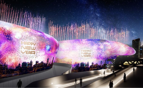 因擁有世界最大規模非標準建築優勢,大範圍的燈光設計非常壯觀!未來科技感的呈現在近年吸引不少年輕族群選擇前往跨年狂歡。想體驗更為現代化的跨年慶祝,一定要去親身感受!