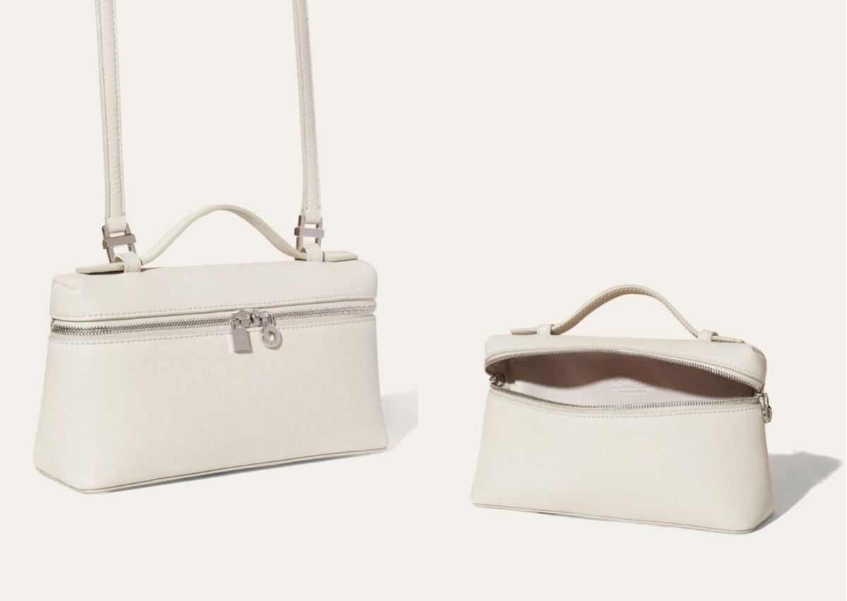 Loro Piana Extra Pocket L19 寬開口小袋採用如黃油般柔軟的小牛皮材質製作,不只可以拆卸肩帶用手提的,也可以斜背、肩背用,皮革手提帶採雙向拉鏈開合,加上 My Charms掛飾,節慶感滿分,配上奶油感色調看了好療癒!