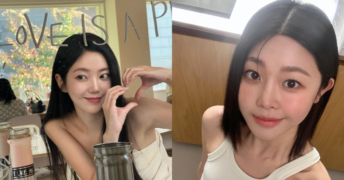 尹廈情穿搭偏好露肩裝扮。Photo from hi__jjeong2@instagram