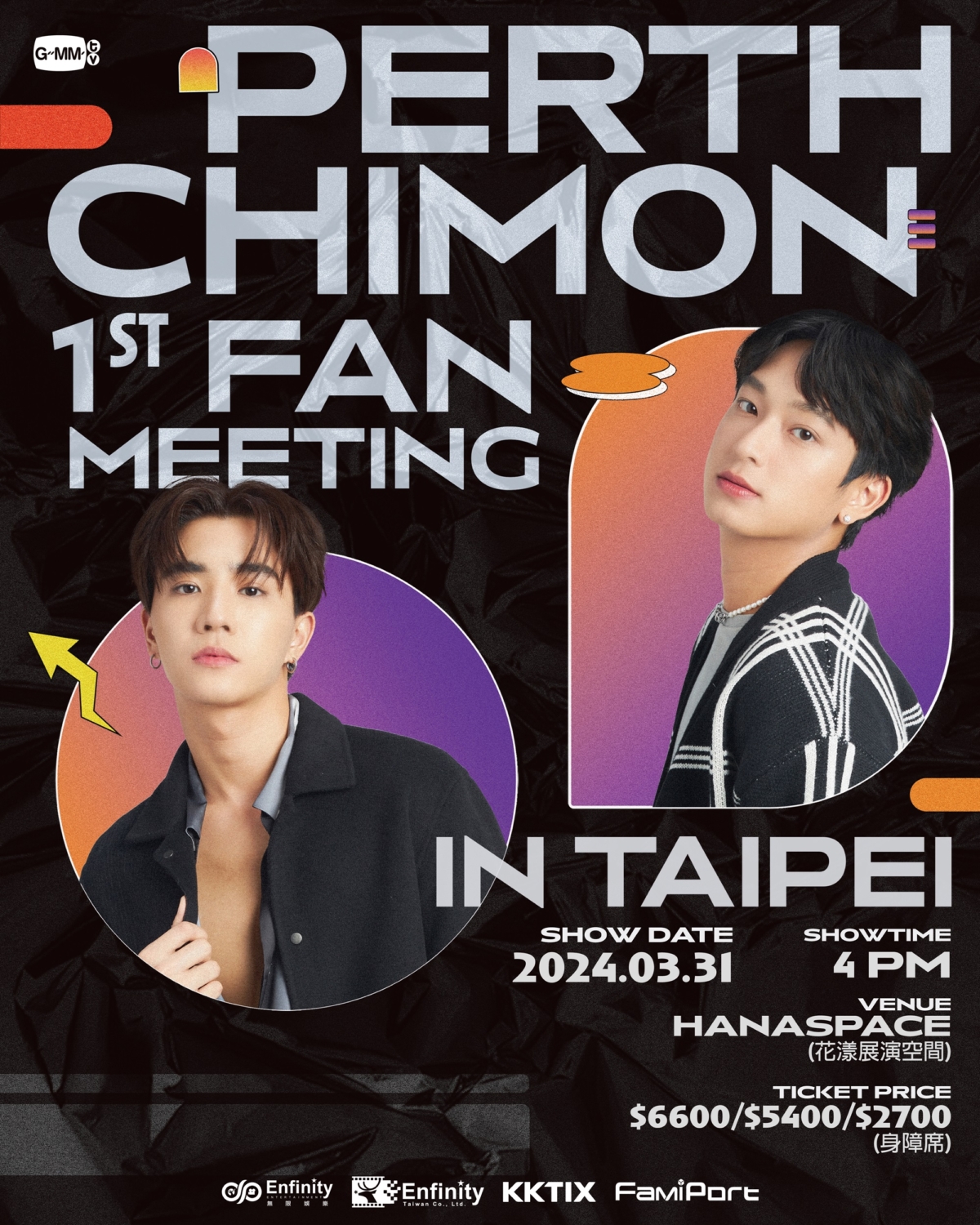 2023年以泰國BL劇《危險羅曼史》晉升熱門CP的Perth-Chimon,在戲劇播畢後,兩人開始一起展開亞洲見面會巡迴,結束多個國家形成後,Perth-Chimon驚喜宣佈將踏上台灣,於3月31日下午4點於花漾展演空間舉辦「Perth Chimon 1st Fan Meeting In Taipei」,與粉絲不見不散。