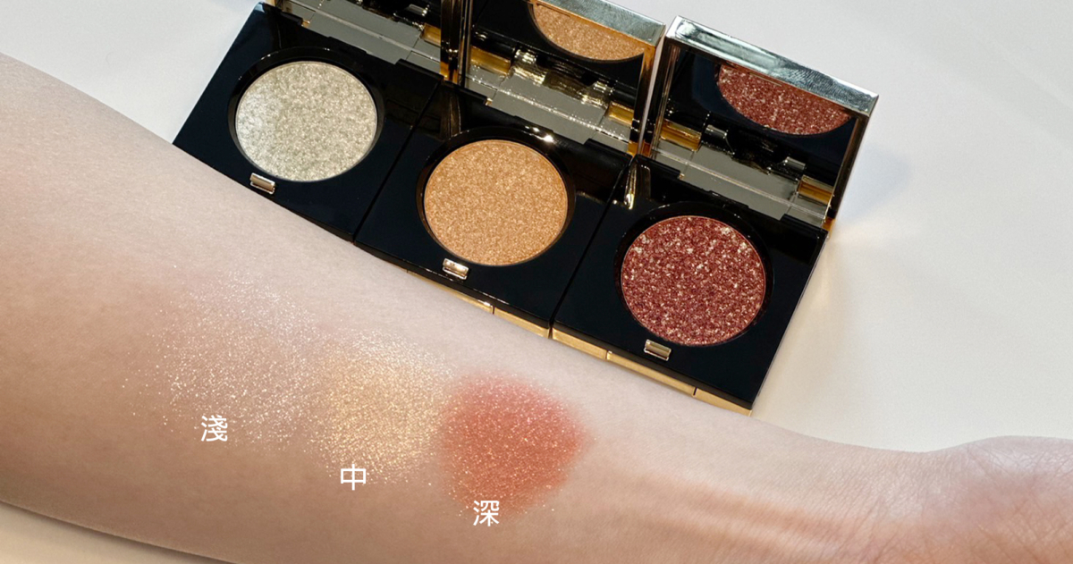 最後使用最淺的亮片色,以指腹「彈壓手法」將亮片均勻且更飽和服貼在眼皮。彈壓的上色方式可以讓眼影更飽和、粉質附著度更好,在最後一步使用指腹上色也可以更強調出整體的亮點,讓最淺的亮片色更加突出,做出深淺並且有明暗立體的亮片眼妝,如此一來就再也不需要擔心亮片眼影所造成腫泡眼啦!