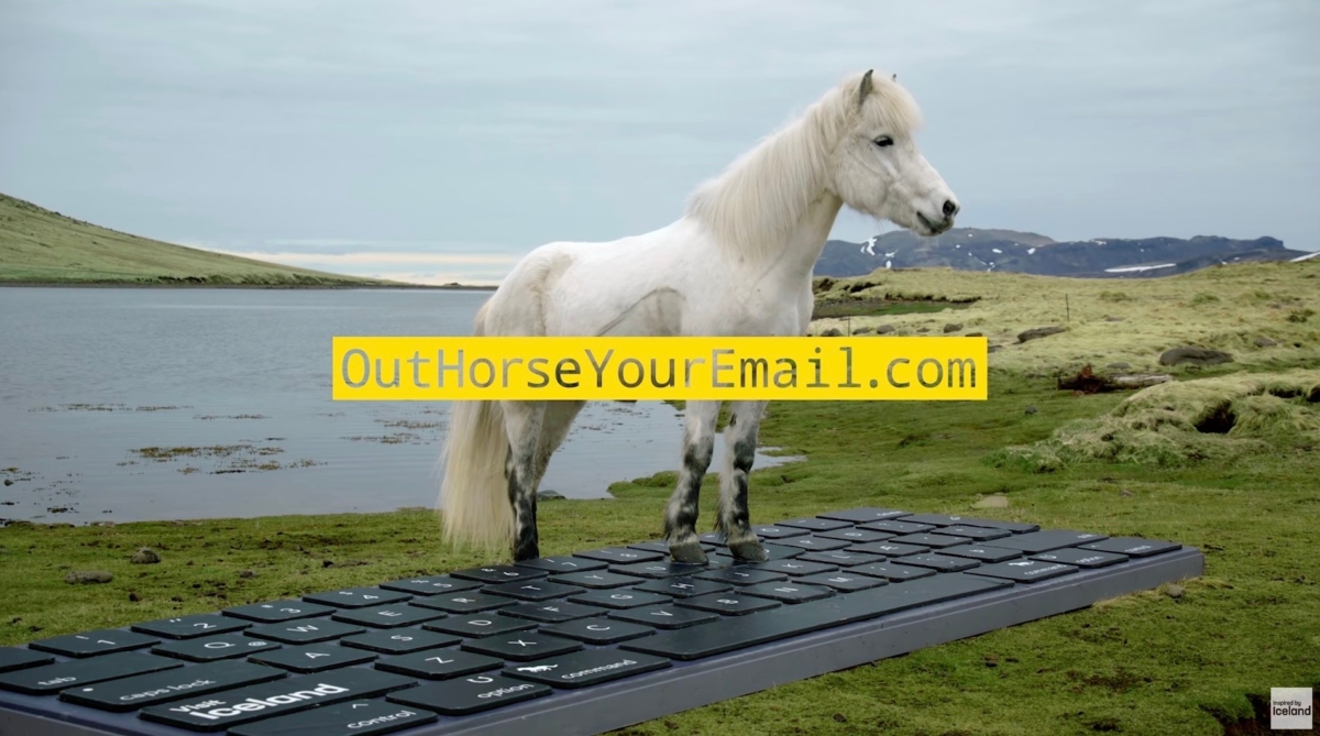 為了保障到冰島的遊客旅遊品質,冰島旅遊局突發想,推出「 OutHorseYourEmail.com」一個由「當地的馬匹來幫你回覆煩人工作email」的企劃!遊客只要到官網從不同個性介紹的3匹馬之中,挑選1匹代替你的馬,再填上姓名、休假結束日及自己的信箱,接著就會出現一封由馬兒替你回覆的信,讓你可以達到不失禮貌又迫使對方無法和你溝通的信(笑)。