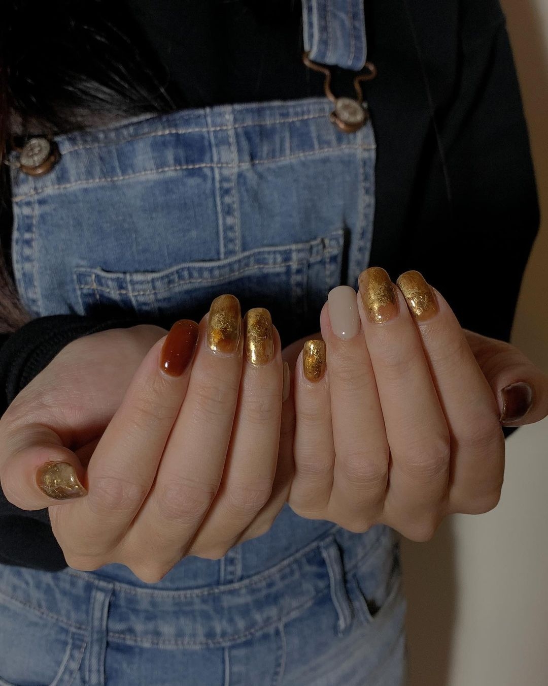 金色代表富饒、繁榮的意象,搭配紅色更能顯得高貴奢華,可以在指彩上添加金色的線條、點綴或者選擇金色的甲片,為整體造型增色不少。