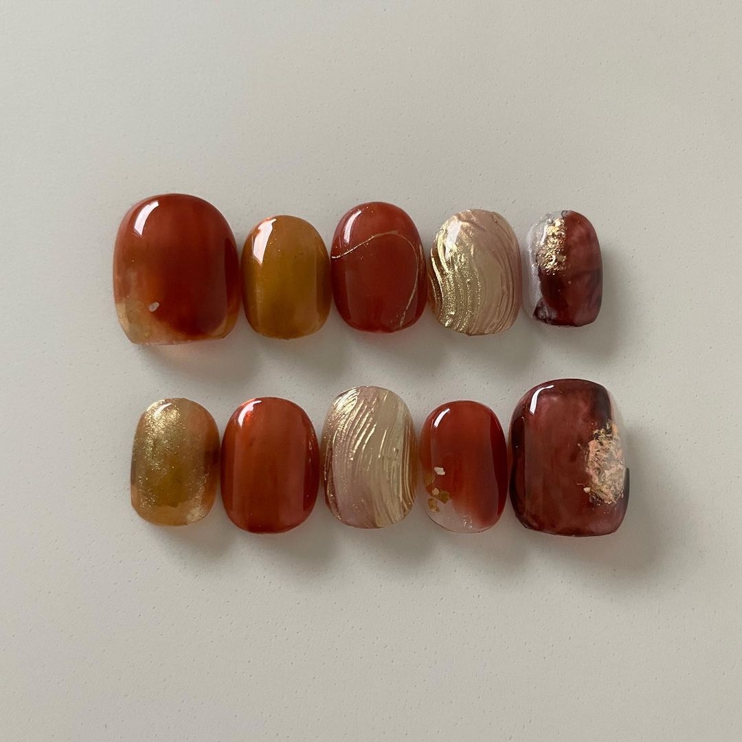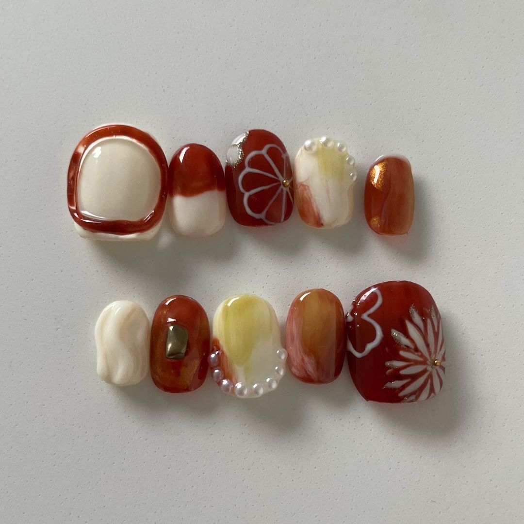 選擇一款飽和度高的紅色作為美甲的主色調,營造濃厚的節慶氛圍,紅色在中國文化中代表著好運、幸福,也是新年最受歡迎的色彩之一,可以嘗試不同的色彩來當作點綴,如橙紅或是黃色,都會很亮眼!也可以根據個人喜好加上一些花卉圖案、珍珠等讓美甲更加豐富有層次。