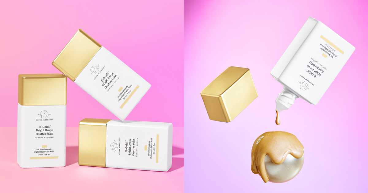 醉象的亮白保養小金露,質地清透好吸收,添加「聚光質彩」,細緻金屬光澤不顯浮誇,能輕鬆讓你化身自帶燈泡肌的閃光女孩!高效的抗氧化劑和必需脂肪酸,一滴淡化色素,提升肌膚的透明度和光澤感。
