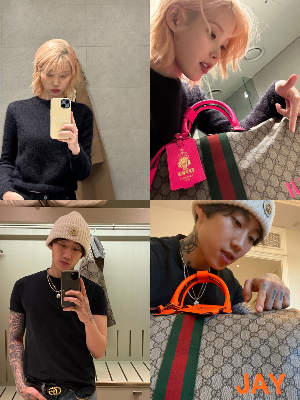 Jay Park在去年2023成為GUCCI全球品牌大使,近日前往米蘭將以此身分首度觀秀,不過同為品牌大使的IU卻早先發出多張繡有名字的訂製包,並曬出新髮色引起熱議。看到「前輩」的貼文,Jay Park立即表示學會並跟上,發出多張模仿IU的姿勢與表情秀包照,引IU也來留言,超有趣互動讓網友笑翻。