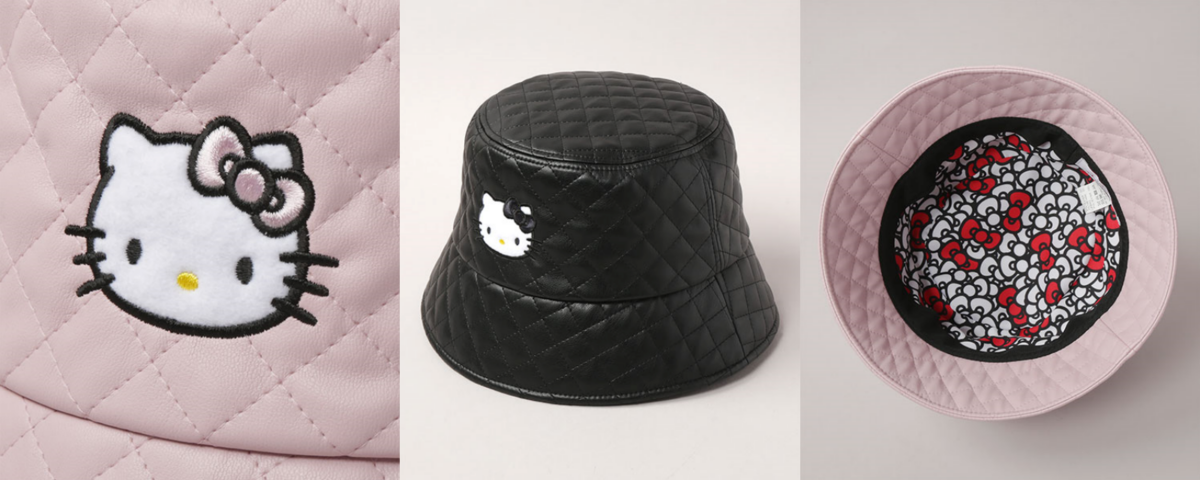 90年代最流行的「菱格紋系列」也有加入~曾經的超時尚單品這次結合毛絨刺繡Hello Kitty,除了經典的粉紅色,還增加了與帽頂內顏色相配的黑與白,簡單又有華麗感的設計怎們能不入手!