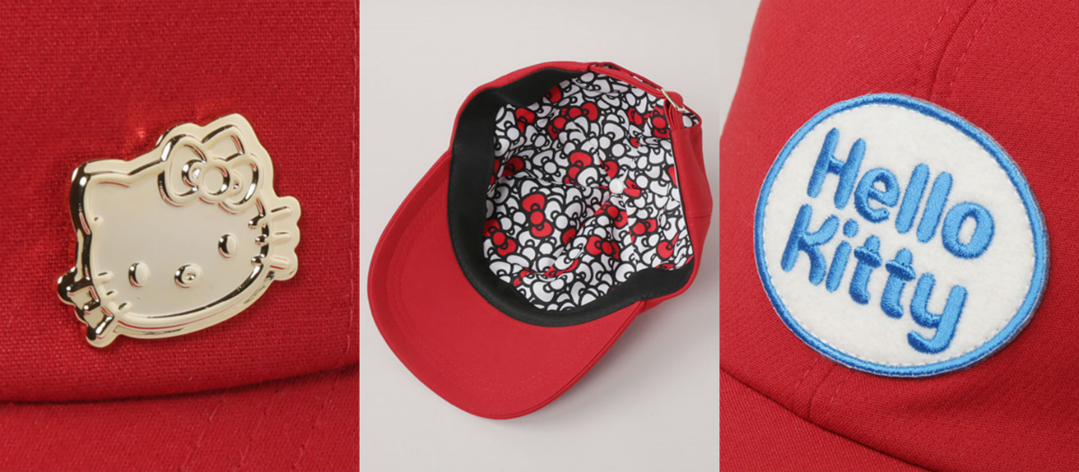 經典刺繡貼報球帽為70年代大量流行的帽款,簡單造型設計適合在任何季節穿戴,直到現在都還是許多人最愛的穿搭配件。這款Hello Kitty棒球帽表面採極簡刺繡貼設計,帽頂裡卻藏有「滿滿紅白蝴蝶結」小心機,別上金色別針立即精緻有質感!