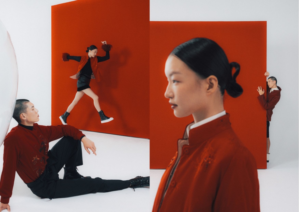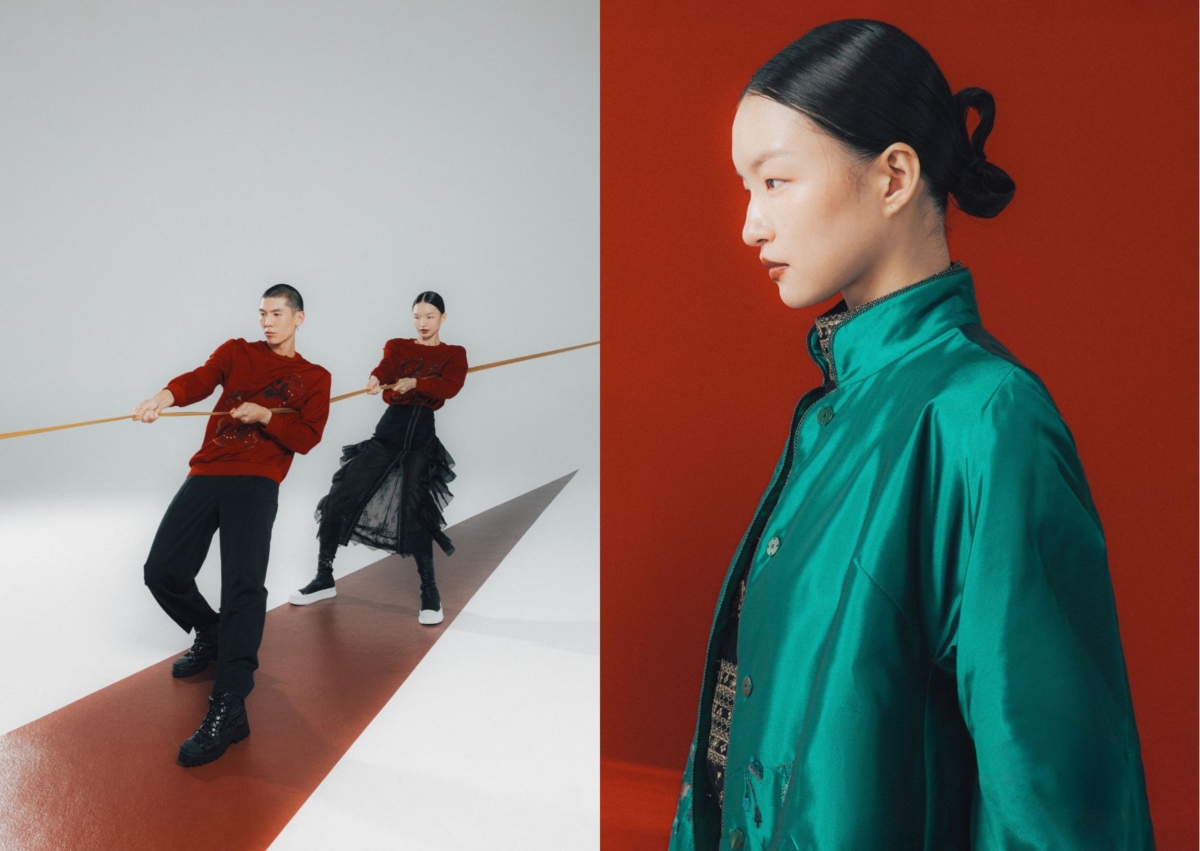 男女裝搭配皆以今年獨家「龍年滿版刺繡LOGO衛衣」為重點,以飛躍龍騰的SC LOGO刺繡為主軸,搭載著盛開的牡丹與象徵如意的雲朵,特以「毛巾繡」為年輕活潑記號,跳脫正統新年氛圍,將東方工藝與時俱進詮釋與融合。