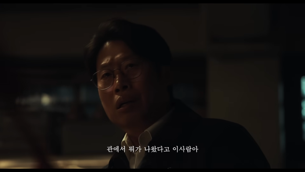 預告片的最後,當初將挖掘上來的棺槨拿去火化的時候,高榮根就曾對其餘三人說:「我説好像有什麽東西跑出來了!」説完,邪靈的手便伸到了金尚德的肩膀...「有極其兇惡的東西,從那裡跑出來了...」這句臺詞也預示著四人已捲入不祥事件。