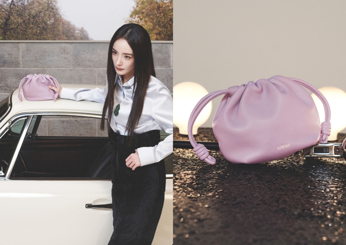 LOEWE 推出全新廣告搭配玉石系列,由著名女星兼全球品牌代言人楊冪演繹,廣告由 David Sims 掌鏡拍攝,楊冪也背著同款 Flamenco Purse 迷你淺紫色包款,並穿著品牌春夏系列,詮釋有些搞怪又可俏皮的模樣。