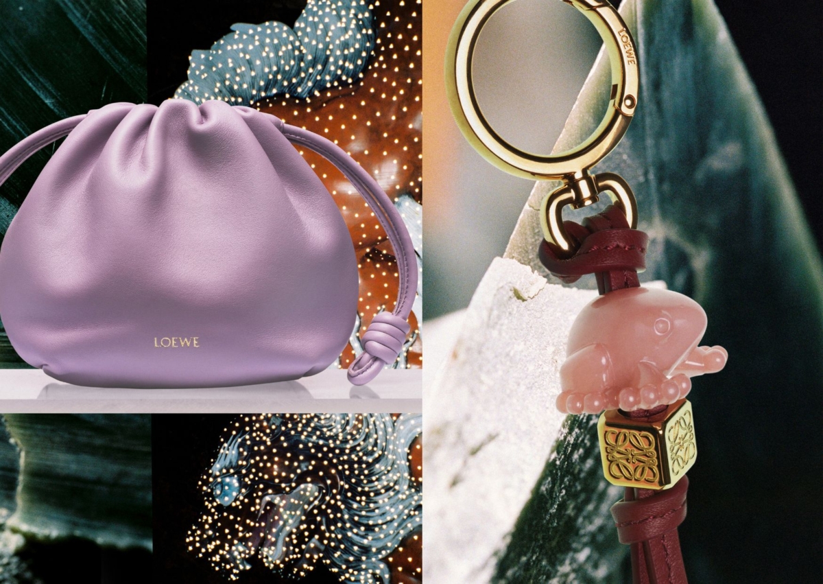 LOEWE 為慶祝農曆新年來臨,推出特別版包款、掛飾及首飾,展現玉器的細膩工藝及色彩,向中國古今的玉雕工藝及大師致敬,這顆全新 Flamenco Purse 迷你包款以限量玉石吊墜的精湛工藝為靈感,注入珍藏古玉的色彩,包形就像圓球一樣,以柔軟納帕羊皮製成,精美褶皺展現如枕頭般輕盈、立體的空氣感,內袋都附有一塊與包款同色系的玉環,象徵著新年好運!