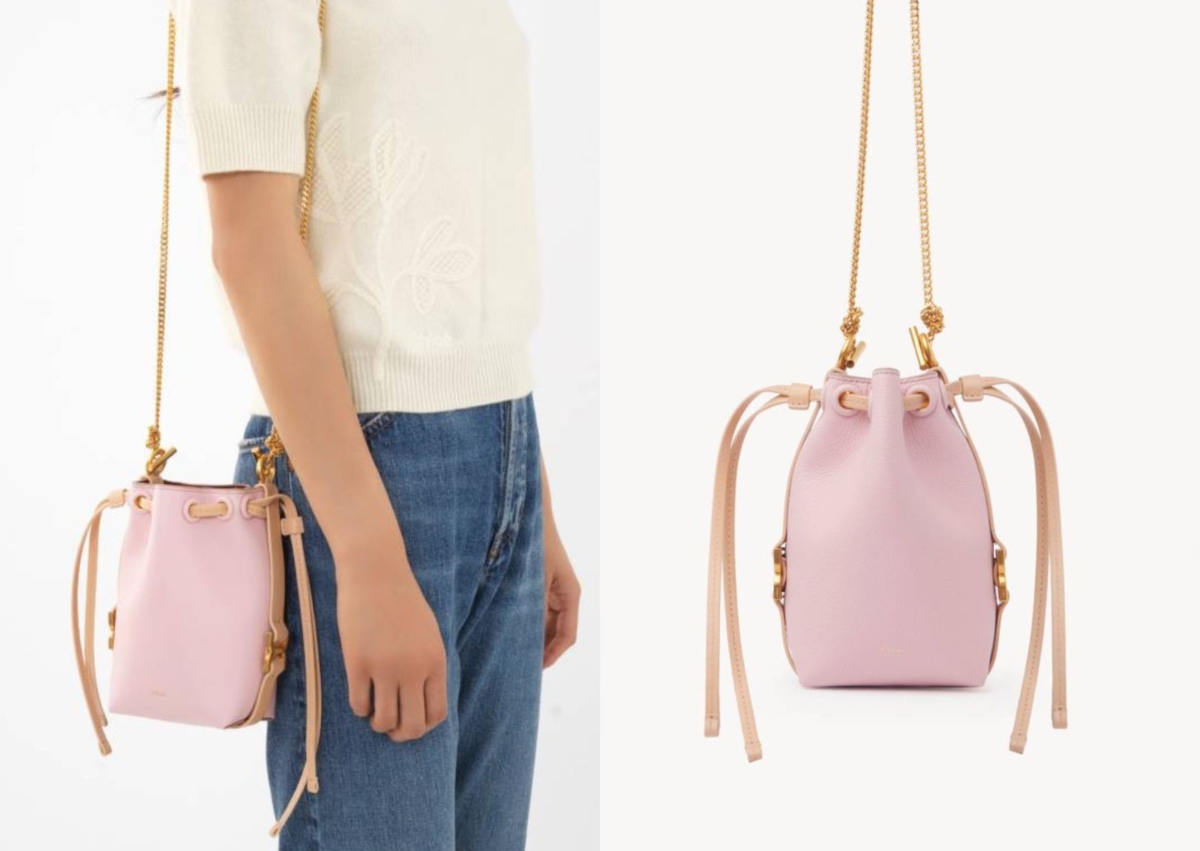 2024 即將迎來金龍年,Chloé 龍年系列靈感來自象徵女性力量的木蘭花,木蘭花和龍都被視為生命的象徵,透過精湛的工藝與經典元素的結合,綻放出春日氣息的詩意之作,這顆霧粉色皮革水桶包來自品牌經典的Marcie系列,以標誌性的金屬感搭扣以及柔和的色彩,呈現喜氣而婉約的風格,水桶包的設計兼具實用與休閒,金色鏈帶設計賦予優雅和精緻的輪廓。