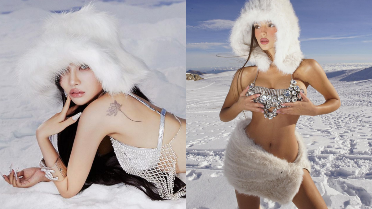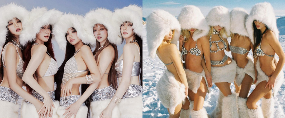 其中第二組照片卻被網友發現疑似是抄襲作品!有許多網友發現成員身穿清涼水鑽比基尼,搭配白色絨毛短裙、毛帽站在雪地背景的系列照片,不管是服裝造型還是顏色,都與國外服裝設計品牌在去年聖誕節推出的時裝廣告一模一樣。
