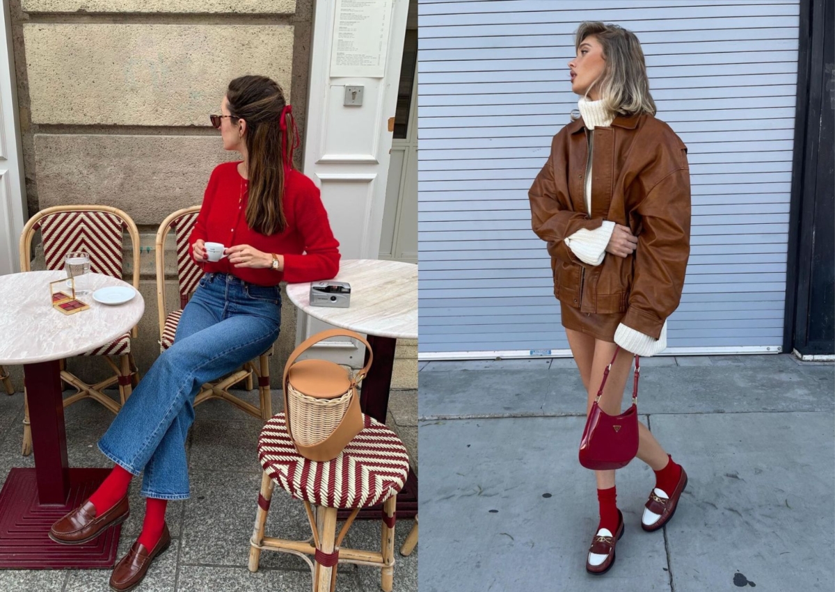 若覺得「紅色褲襪」還是太過於高調注目的話,可以試著先從紅色短襪、中長襪開始,挑選一雙酒紅色或是正紅色短襪都合適,上身無論是搭配牛仔褲、大地色系或是一般黑白灰色穿搭,加入一些紅色元素,都能讓整體造型提升亮點!