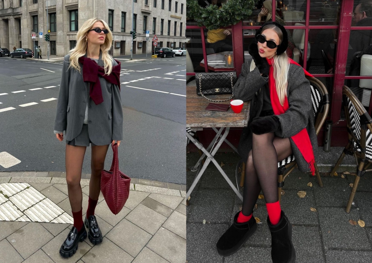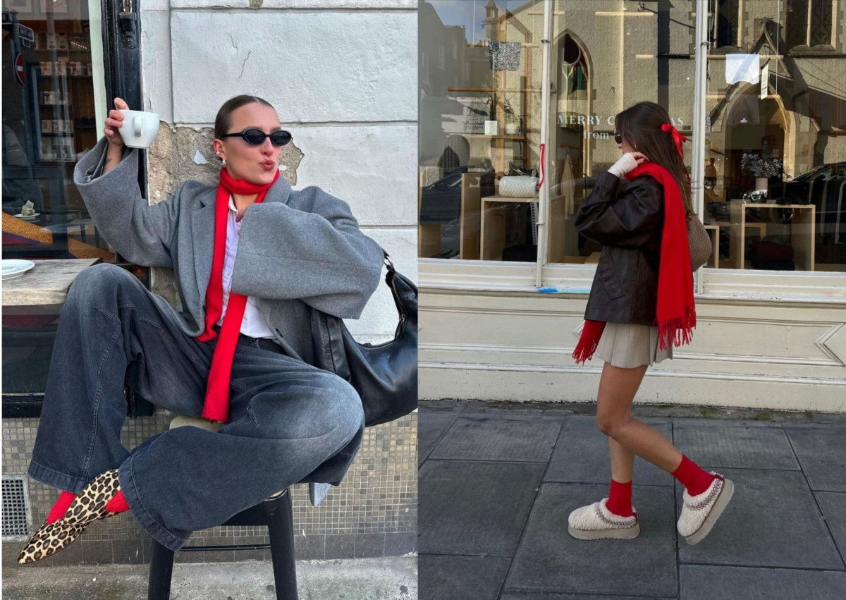 紅色短襪搭配紅色圍巾也容易在平凡的穿搭中增添和諧感,讓紅色沒那麼突出、不自在,也是很多歐美時尚部落客最常見的搭配方式,隨意搭配都很時髦、且不容易出錯,適逢即將到來的年節氛圍,不仿照著這幾位穿搭範本試看看吧!