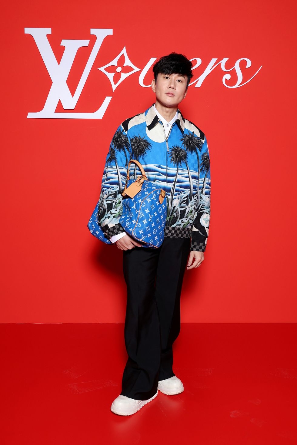 這次 Louis Vuitton 時裝周不只請來一位亞洲藝人,身為品牌好友的林俊傑也出席了 Louis Vuitton 秋冬男裝秀場,以熱帶海灘圖案的夾克、搭配白襯衫和黑西裝褲,腳踩休閒款球鞋,手上抱著一顆藍色 Speedy 手提包,更巧妙呼應著整身穿搭,既百搭休閒又不失特色。