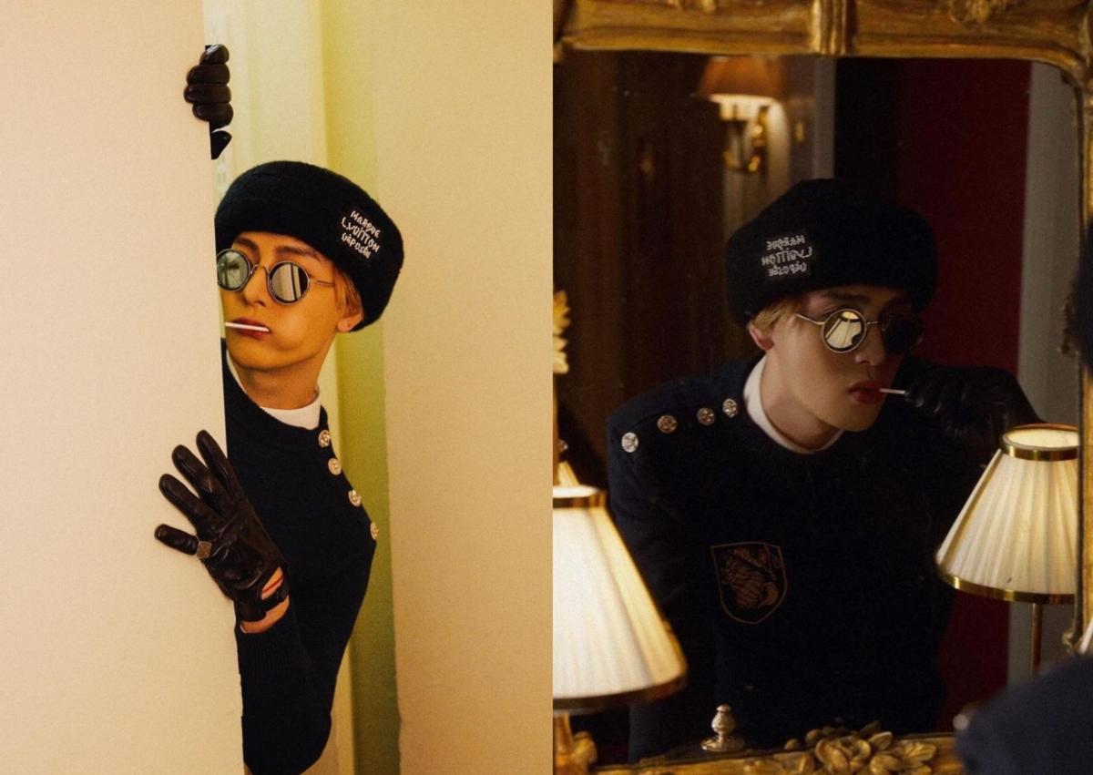 每出席必能造成話題性的王嘉爾,這次以深色小圖騰針織毛衣搭配白襯衫,配件更是本次穿搭焦點,戴上一副圓框墨鏡和黑色針織貝雷帽, 肩膀上的軍風徽扣和皮革手套是小細節,將酷帥感混搭休閒時髦,低調的展現他的帥氣氣質。