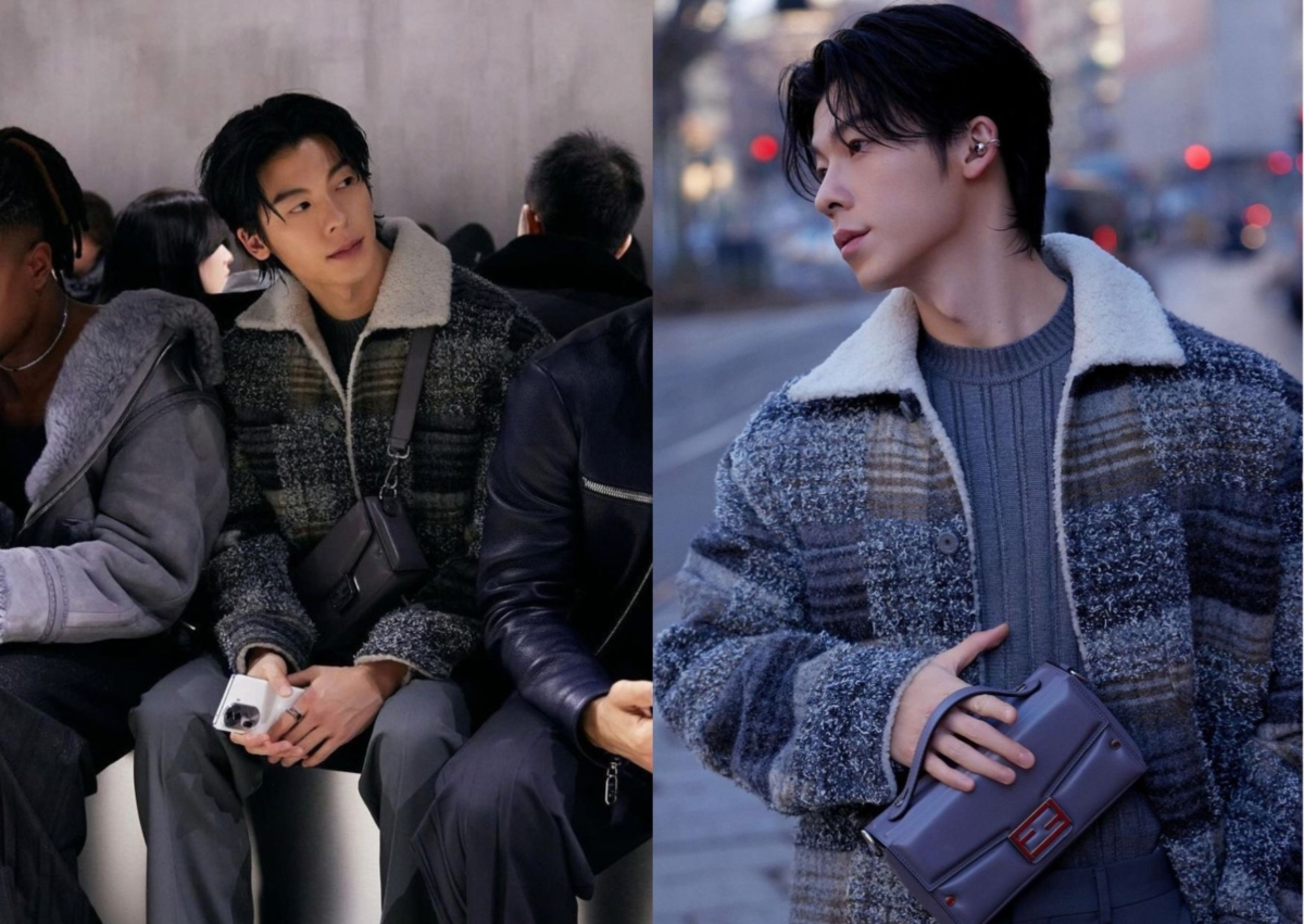 剛剛拿下 Fendi 全球男裝大使的許光漢這次當然也是大秀焦點,選擇一身拼接格紋翻領毛呢外套,內搭灰色條紋感針織毛衣和同色系西裝褲,運動鞋和斜背包完美詮釋休閒隨性的穿搭,還有些日系男子的氣質!