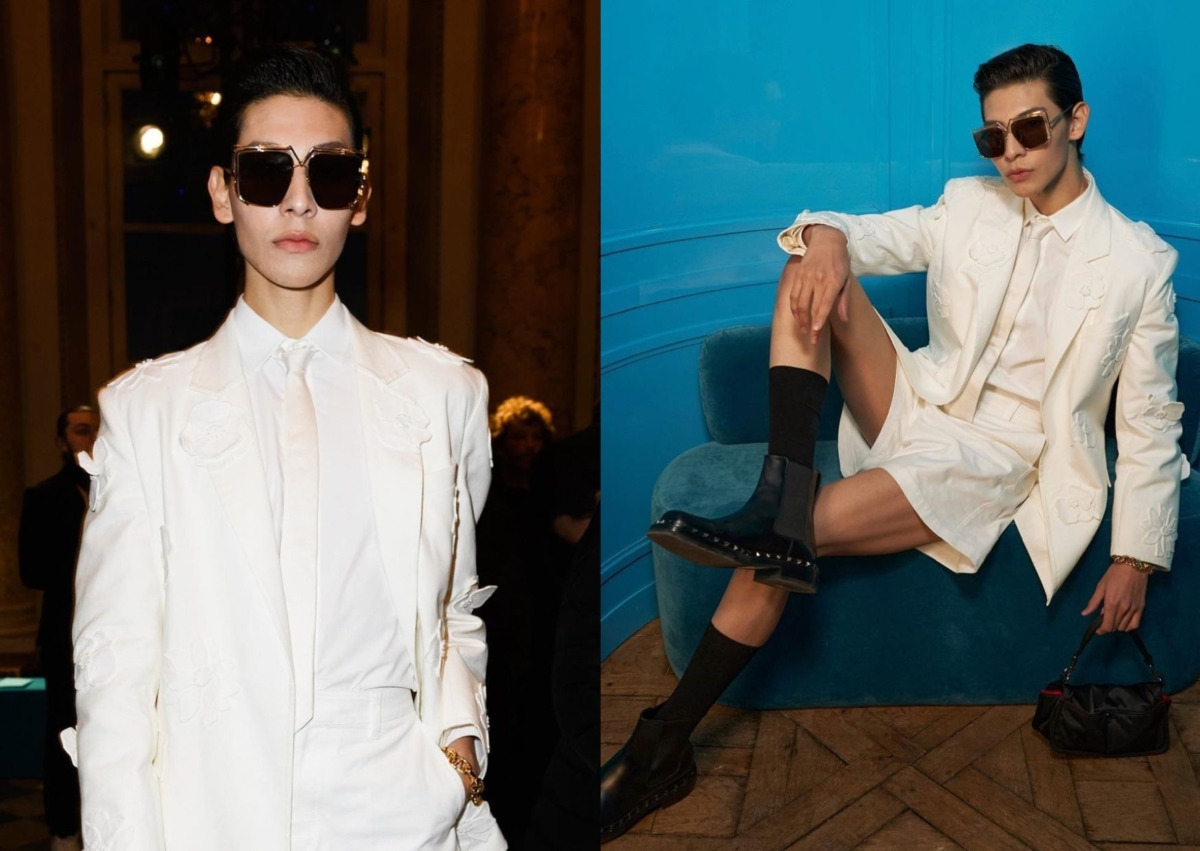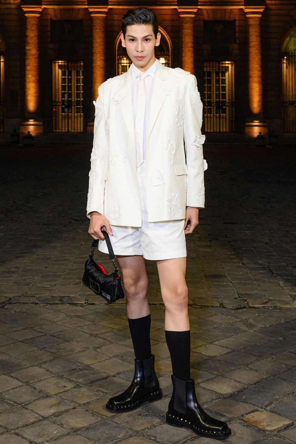 近期聲勢高漲、話題性十足的日本男神 Raul 村上真都也出席了 Valentino 時裝周,年僅 20歲、並擁有192公分的超完美夢幻身高,穿上一身 Valentino 2024春夏男裝系列的純白色立體花朵刺繡西裝外套、白色襯衫和短褲、白領帶,整身全白造型加上陰柔氣質呈現一股浪漫氣息!